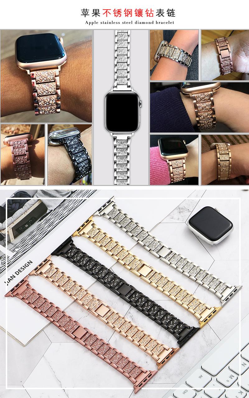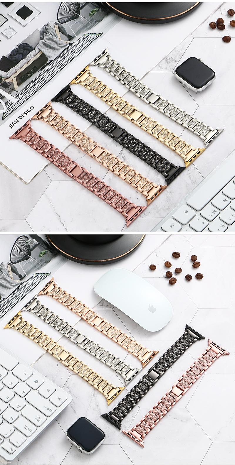Adecuado para correa de Apple Watch, correa de acero inoxidable sólido de metal de moda para Apple Watch, correa de diamante para iwatch