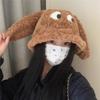 Sombrero de cachorro de orejas largas y ojos grandes para mujer, lindo, divertido, de felpa, para estudiante, peludo, a prueba de frío, dulce, cálido, tipo jersey