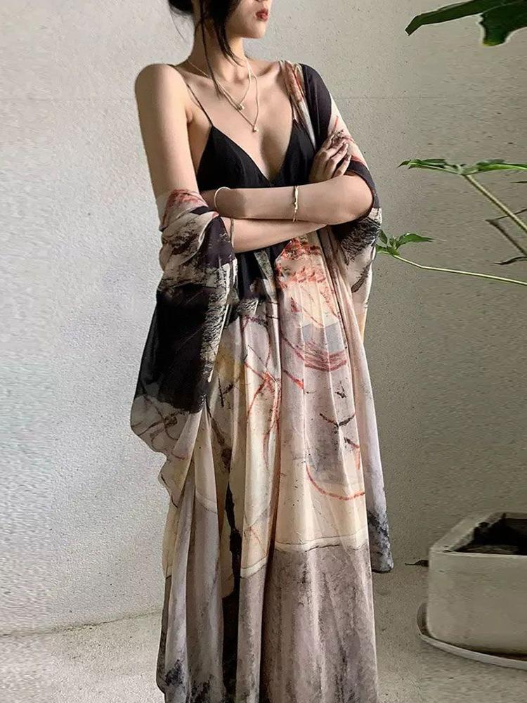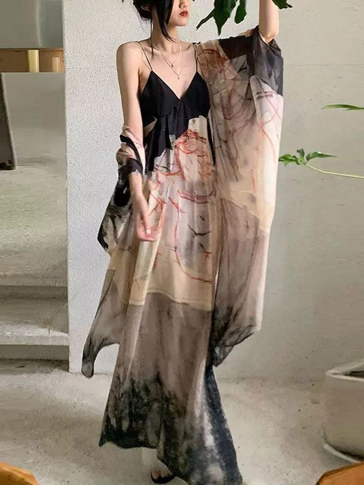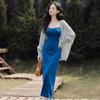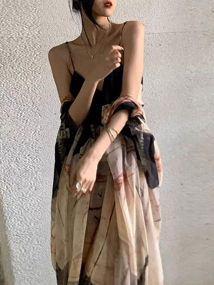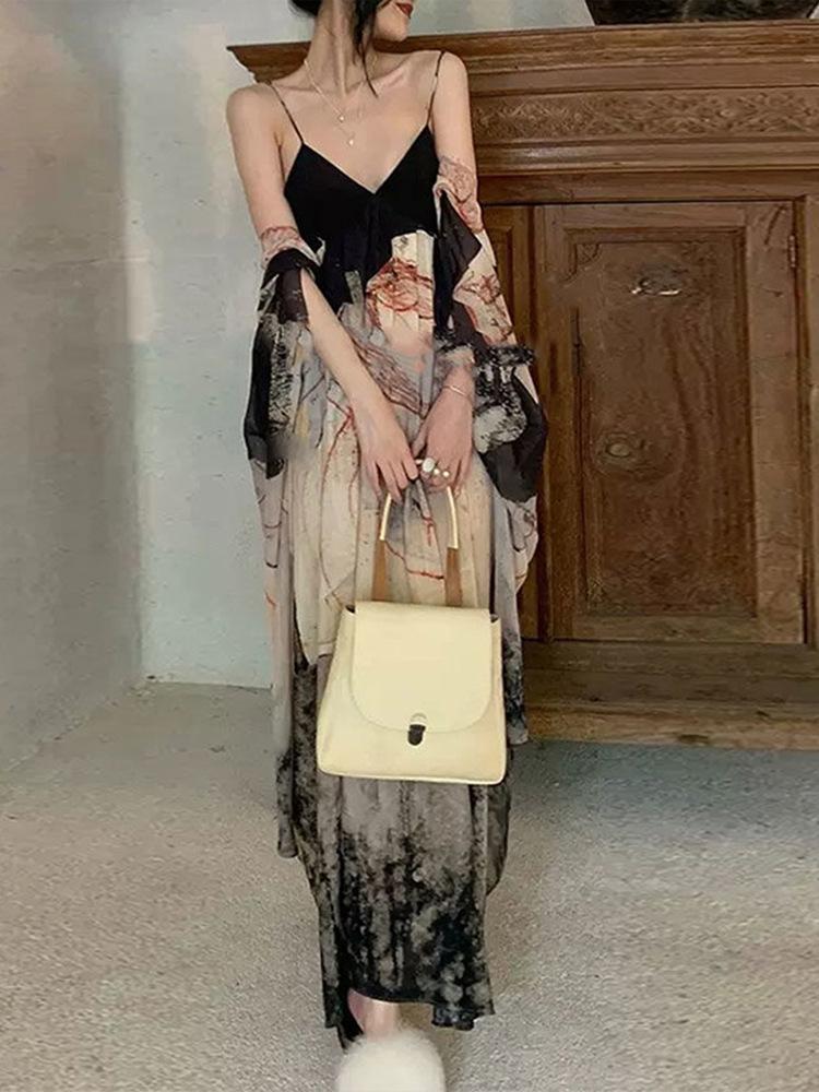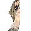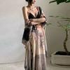 Descubre Nuevo Traje Hermoso, Estilo de Hermana Real de Alta Gama Hora del Té Francés Tirantes Vestido Floral y Chal Conjunto de Dos Piezas