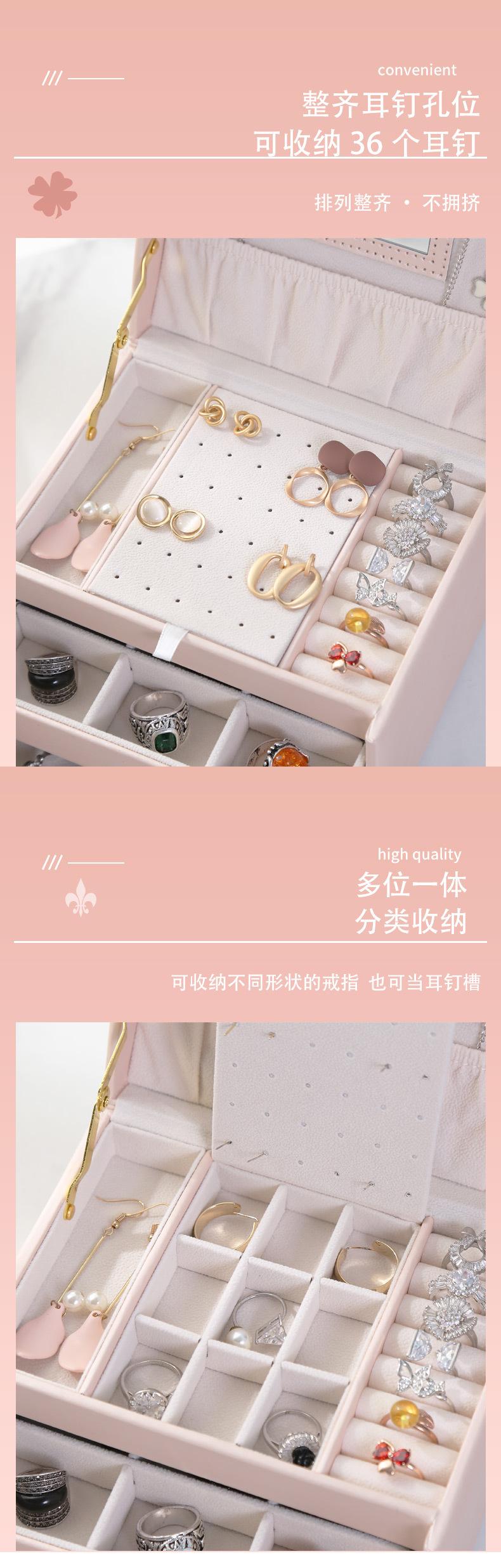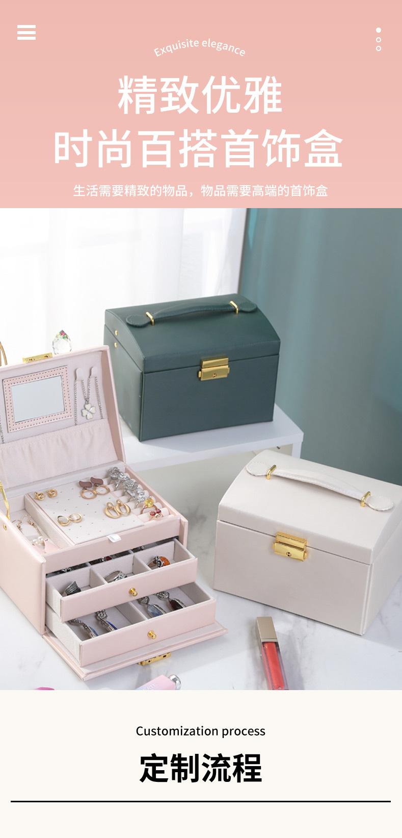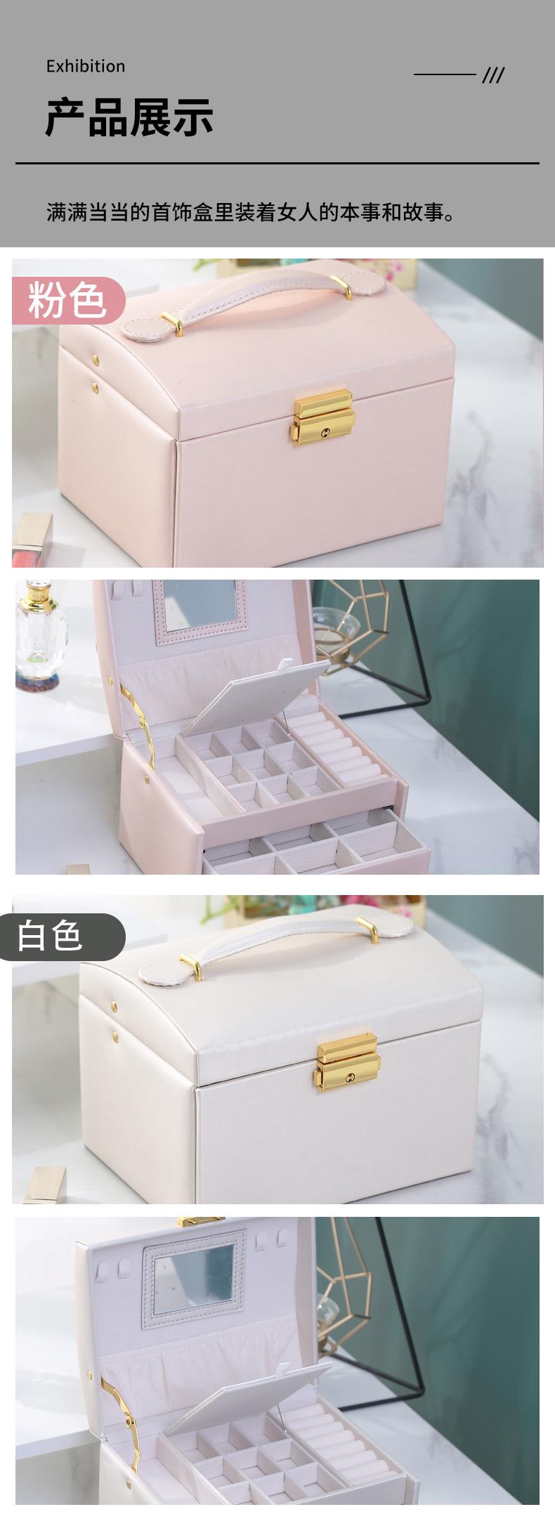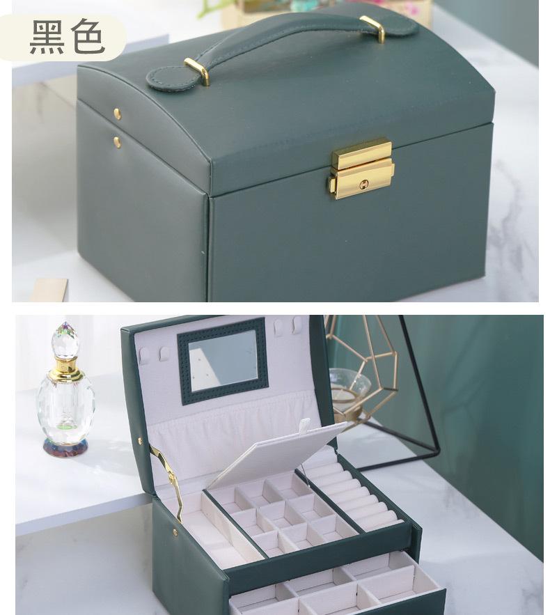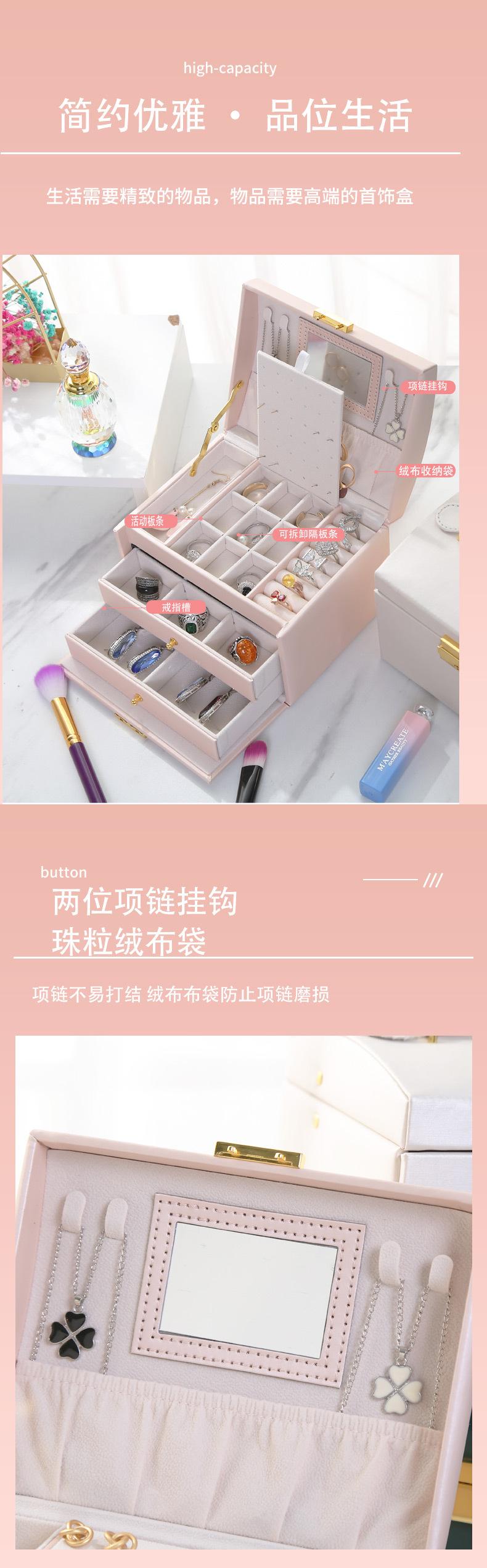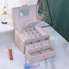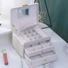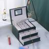 Joyero de cuero de tres capas con cajón, ligero y lujoso, para guardar pendientes y aretes, con cerradura.
