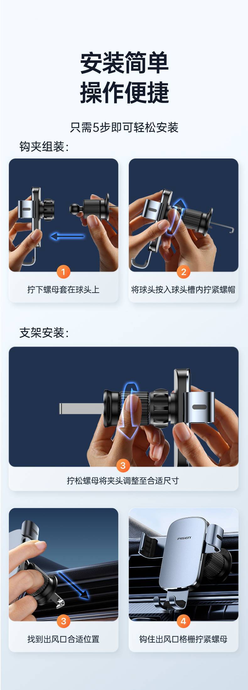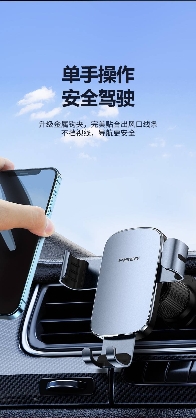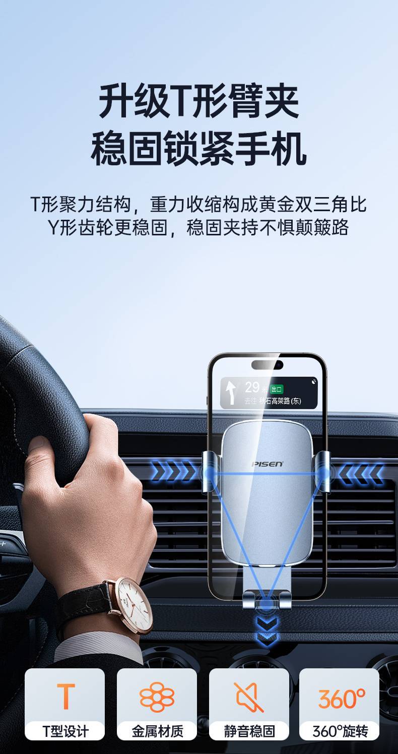 Pinsheng - Nuevo soporte para teléfono móvil para coche, mini salida de aire, soporte de navegación estable, soporte para teléfono móvil para tranvía