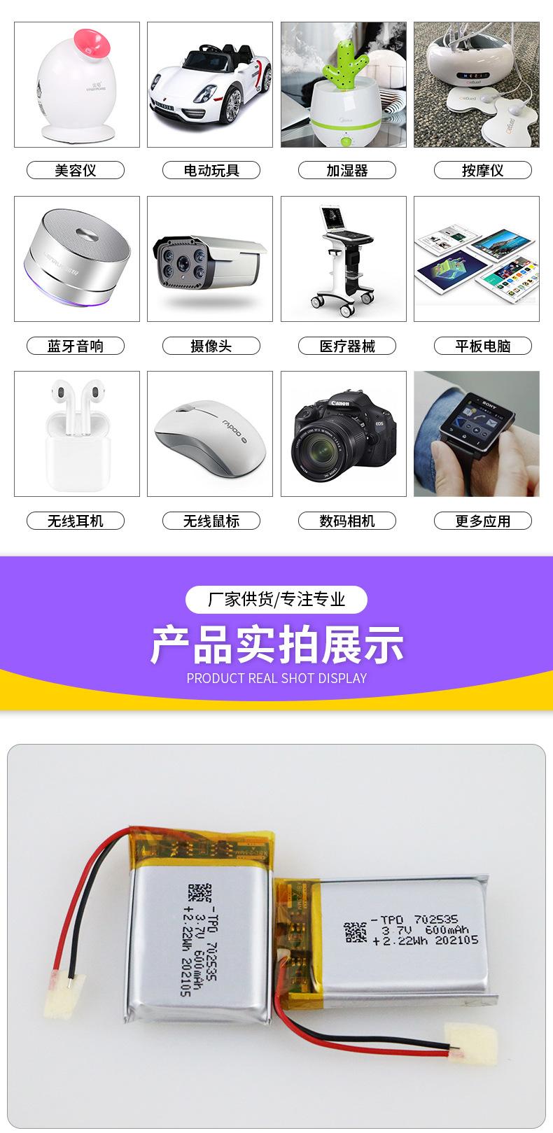 702535 Batería de Polímero de Litio 3.7V600Mah Herramientas Eléctricas Afeitadora Cámara Digital Batería de Litio Personalización