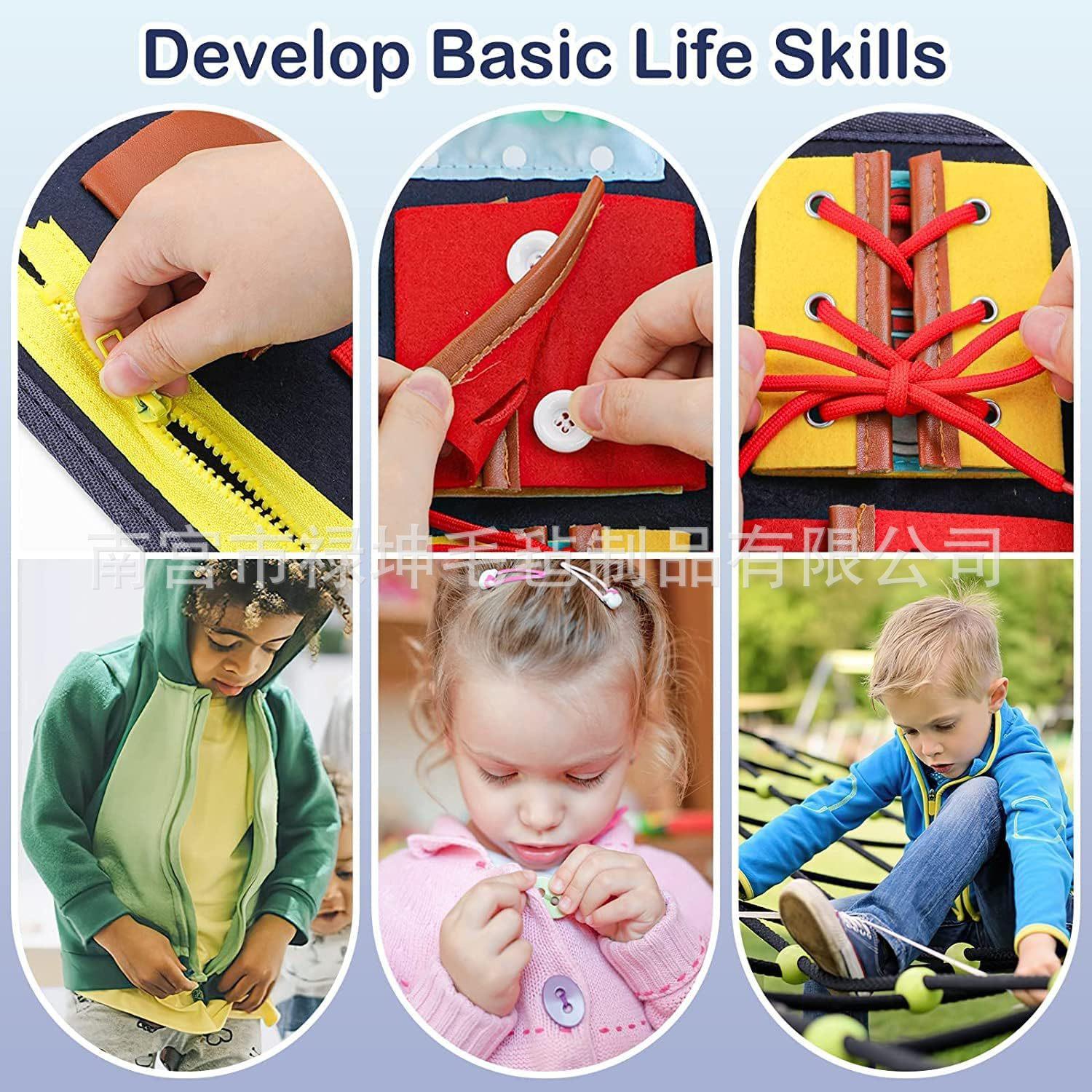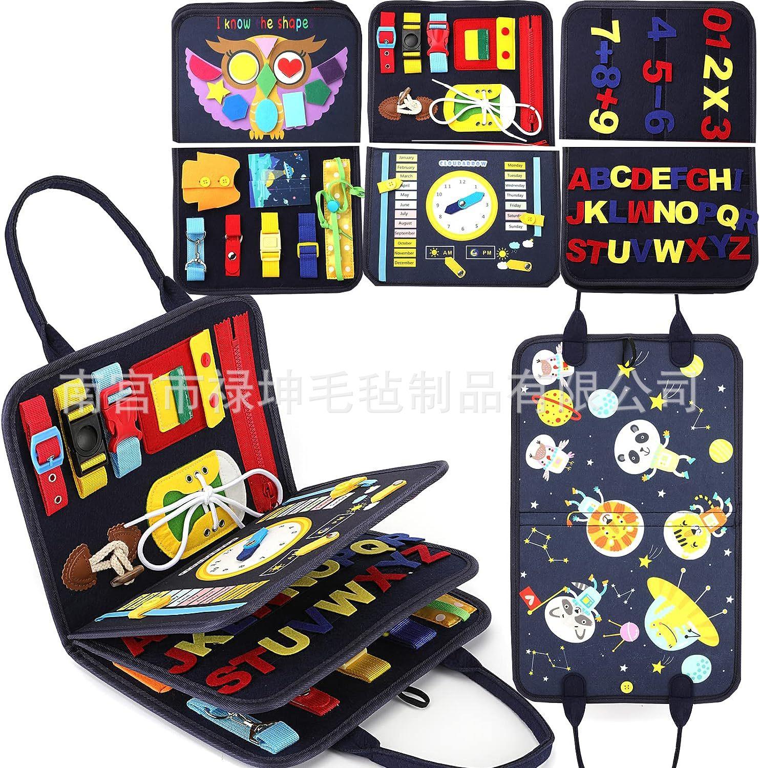 Tablero ocupado de fieltro para niños transfronterizo, rompecabezas práctico para el cerebro, educación temprana, tablero para vestirse, Amazon cpc, Tablero de aprendizaje certificado
