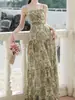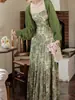 Vestido Largo de Chifón con Tirantes de Estampado Floral Retro Francés, Aspecto Adelgazante, Vacaciones en la Playa, Vestido Largo de Playa, Vestido de Alta Gama