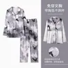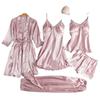 Pijamas de mujer de verano de seda de hielo sexy caliente ropa de casa primavera y otoño manga larga delgada talla grande transfronterizo traje de cinco piezas bata de baño
