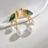 Pendientes de borla de hoja de perla retro francesa, pendientes de acero inoxidable con diseño de nicho INS para mujer