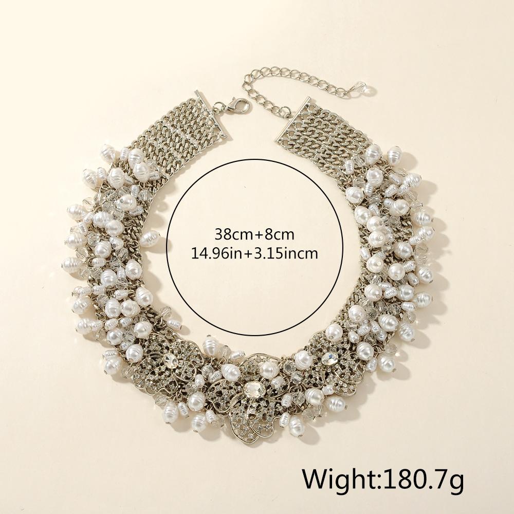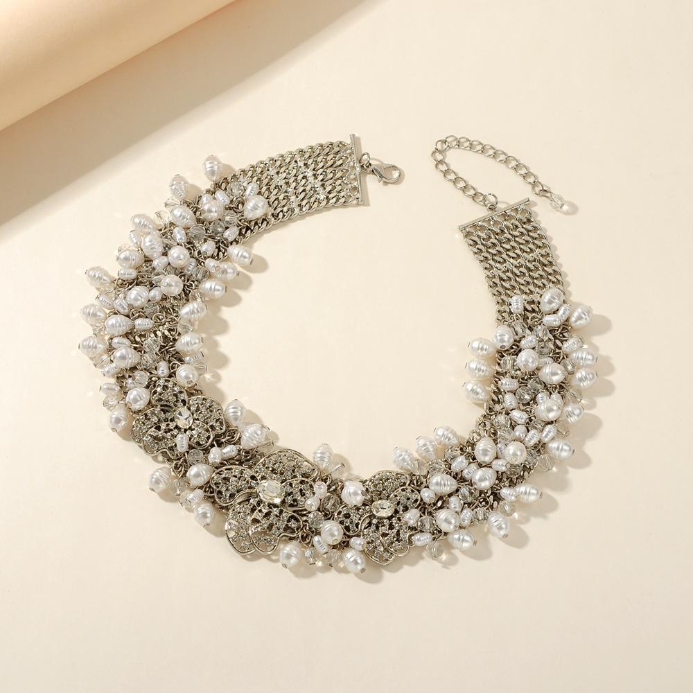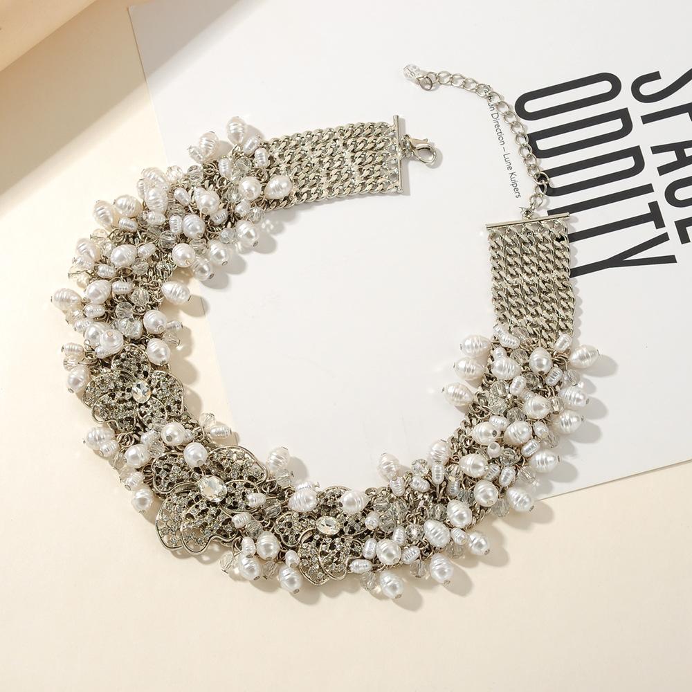 Collar de perlas de cristal con diamantes de imitación exagerados de estilo europeo y americano para mujer, cadena de clavícula corta, colgante de accesorios decorativos de moda coreana