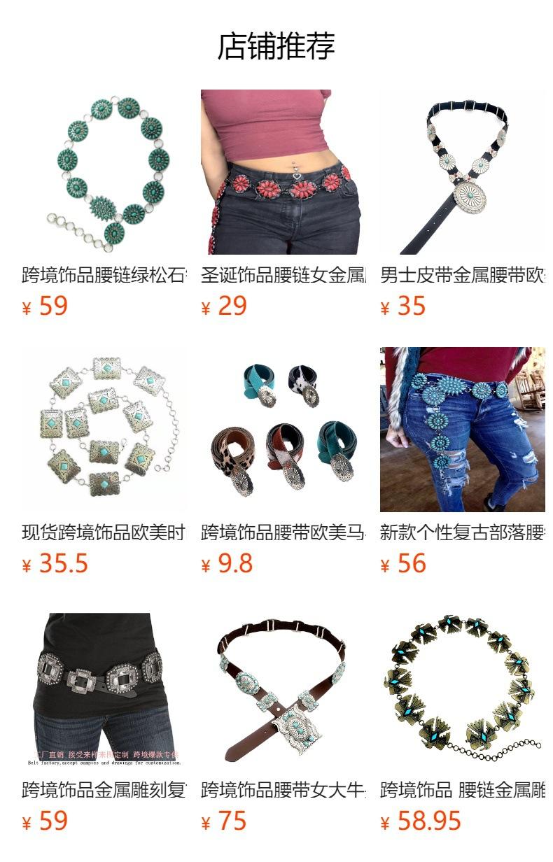 Cadena de cintura para mujer nueva personalidad nicho moda todo-fósforo metal incrustación turquesa con jeans cadena corporal de metal