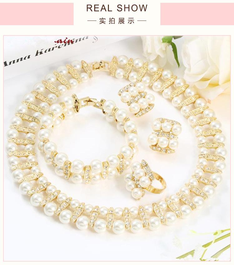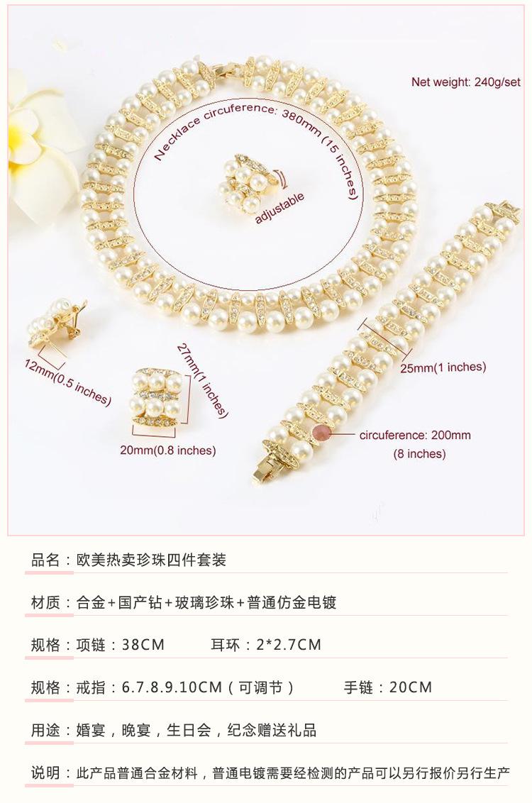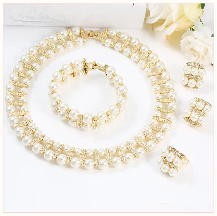 Ventas directas de fábrica Comercio exterior europeo y americano traje de boda para novia diamante chapado en oro 18K collar de noche para dama pulsera ropa joyería RMB:19.59 |  Juego de joyería de perlas europeas y americanas con diamantes y chapado en oro de 18 quilates para mujer, collar de noche y pulsera, joyería para ropa RMB:24.9 |  Juego de joyería de cuatro piezas más vendido en Europa y América, collar de noche para dama chapado en oro de 18 quilates con diamantes, pulsera, ropa, joyería RMB:24.2 |