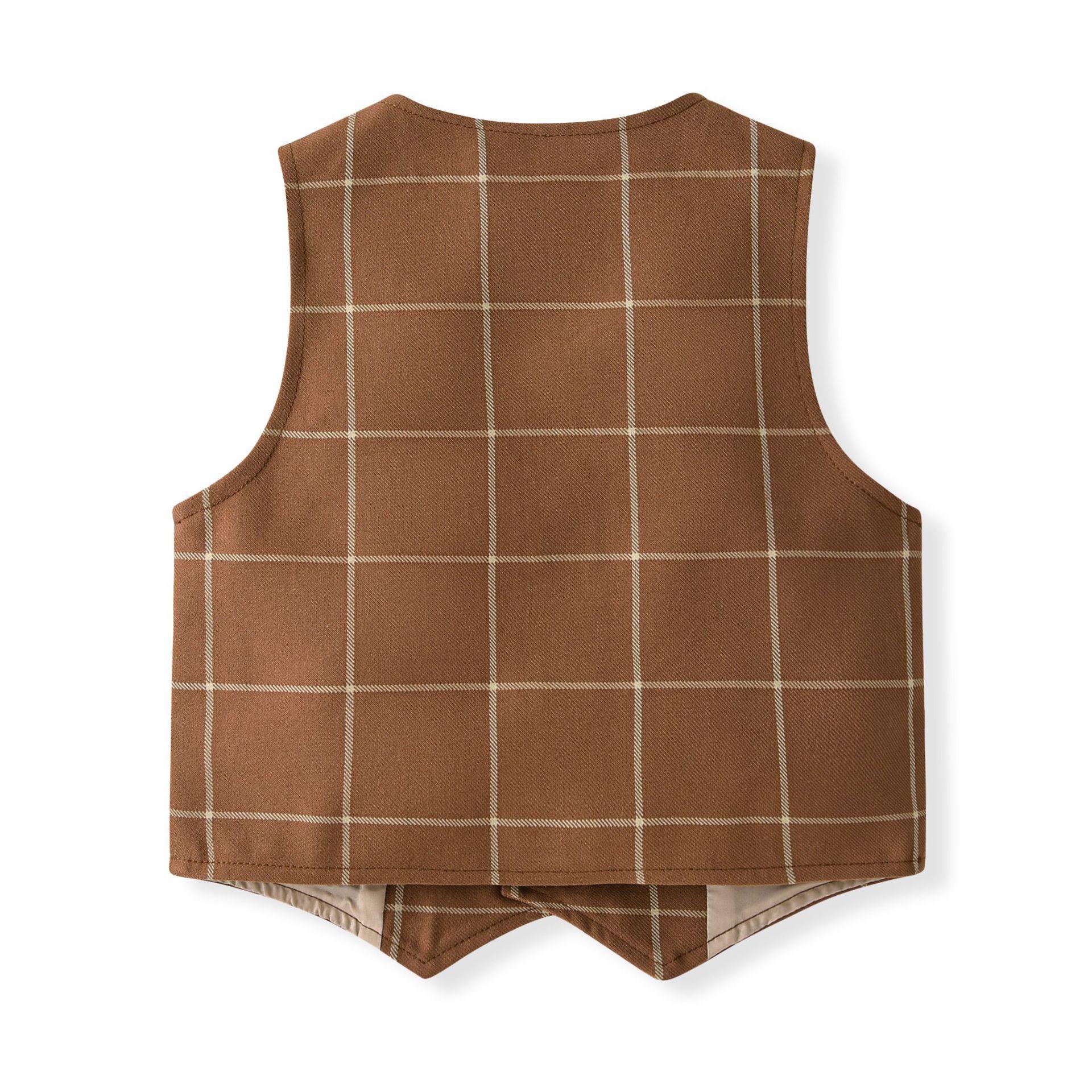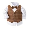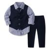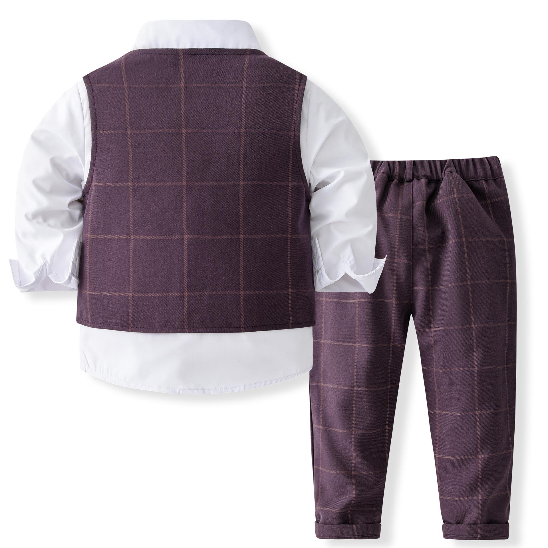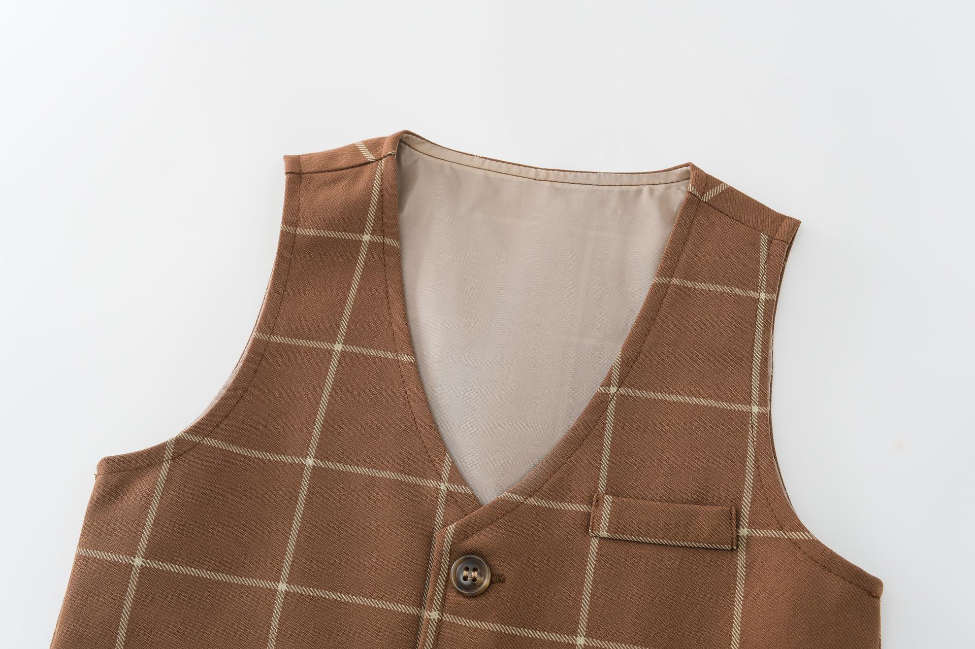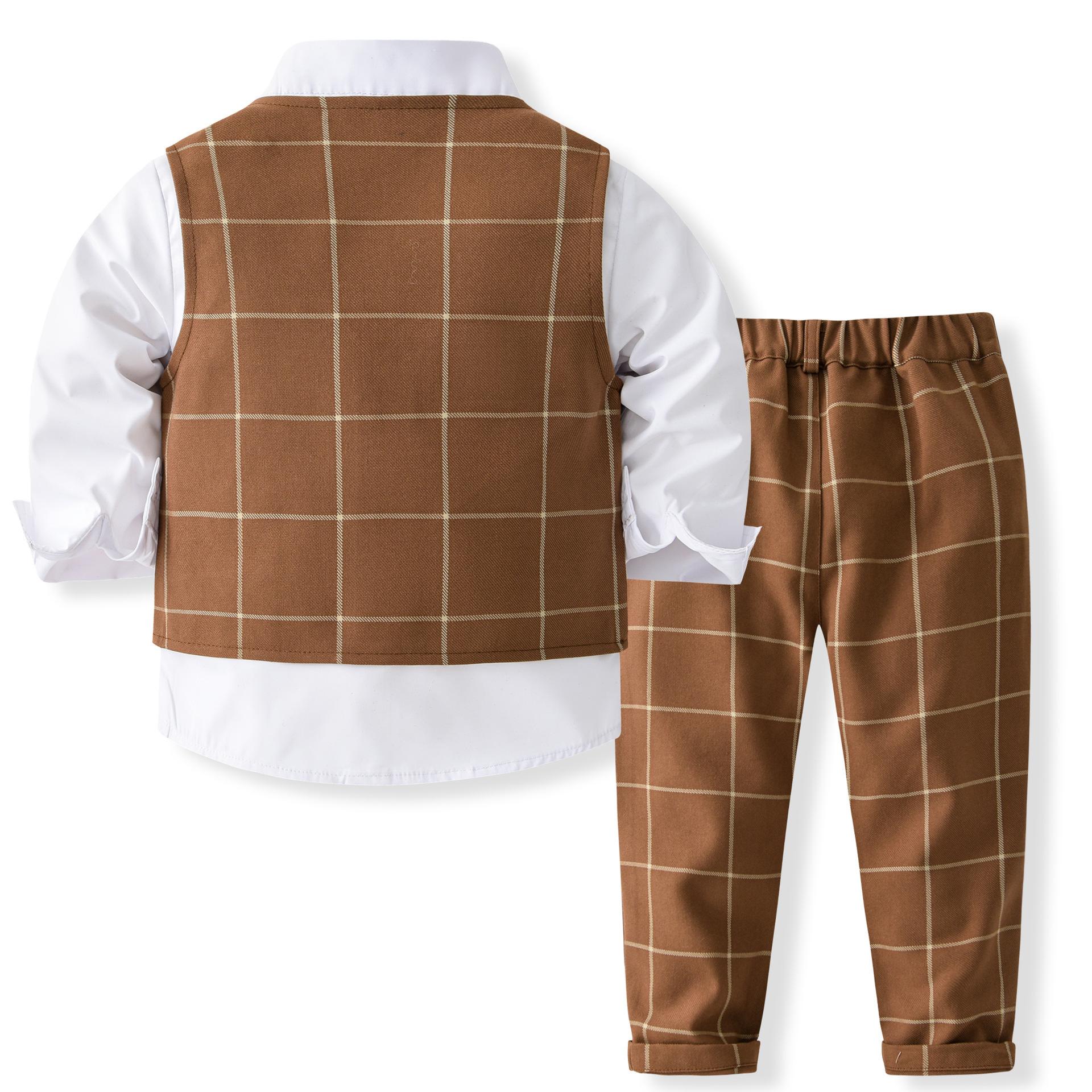 Traje de caballero europeo y americano transfronterizo para niños, chaleco a cuadros, camisa de manga larga, pantalones, conjunto de tres piezas, vestido infantil, vestido de primavera