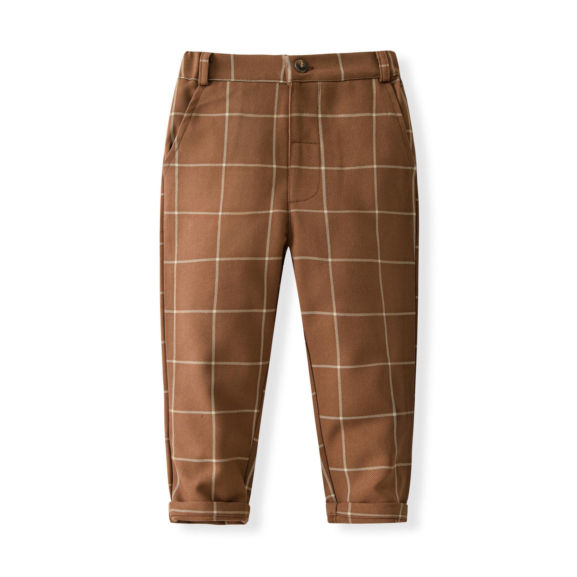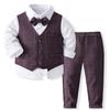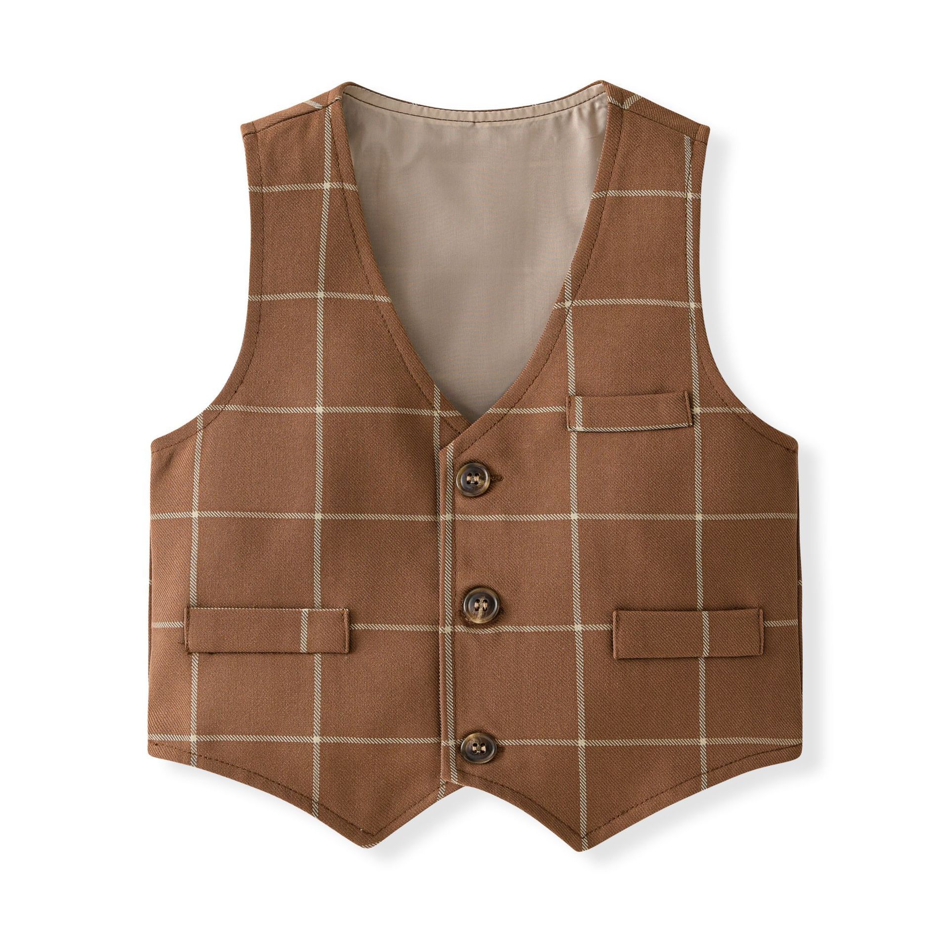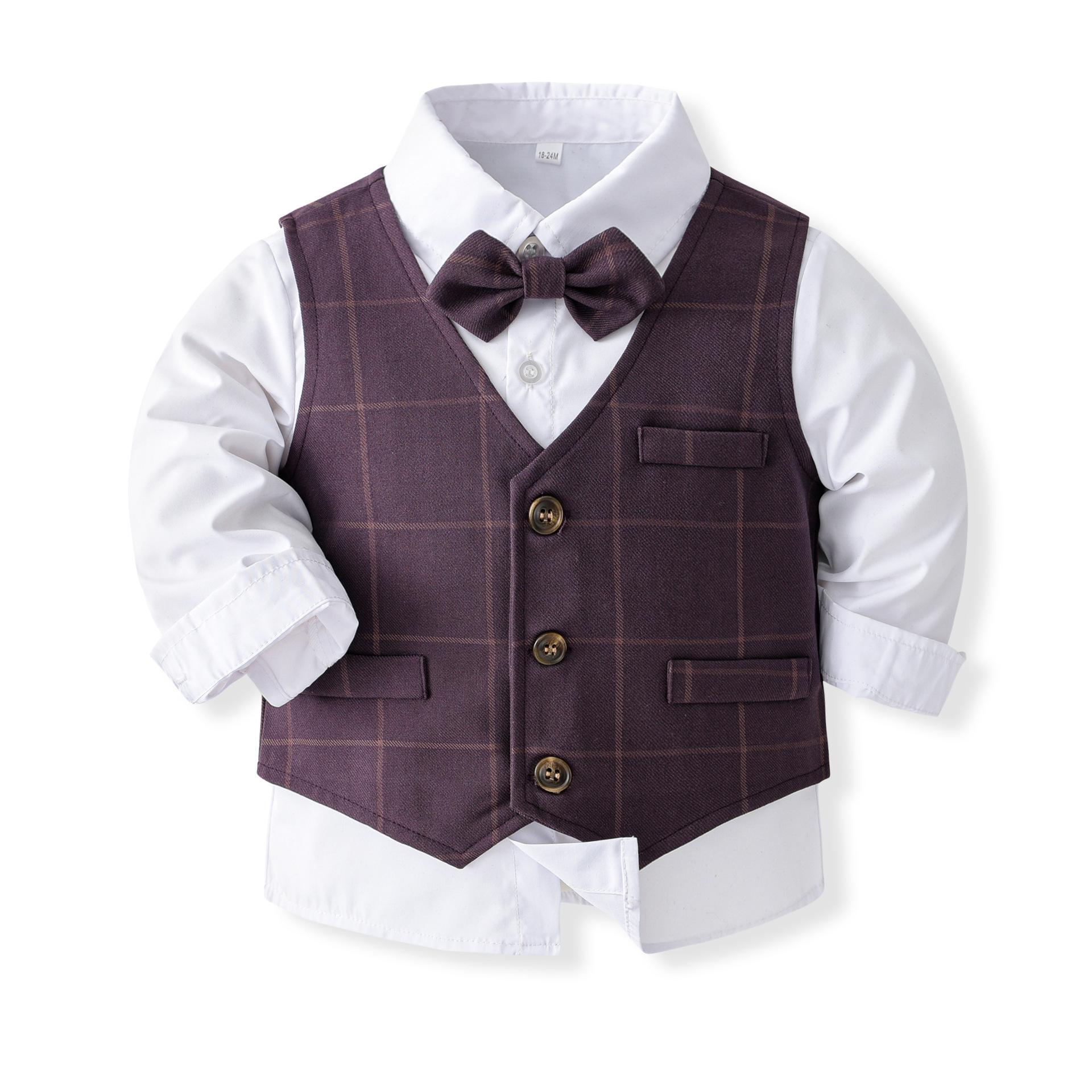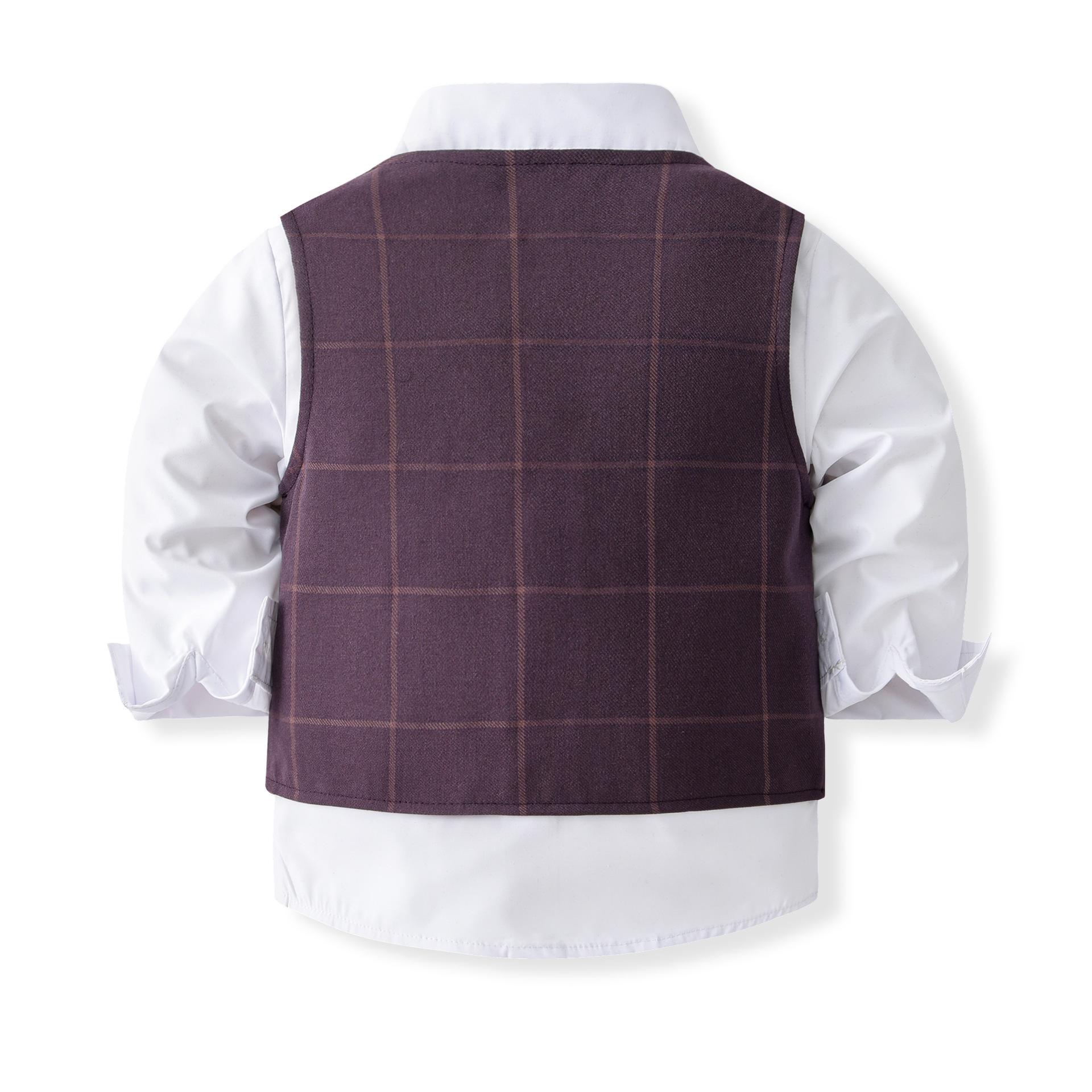 Traje de caballero europeo y americano transfronterizo para niños, chaleco a cuadros, camisa de manga larga, pantalones, conjunto de tres piezas, vestido infantil, vestido de primavera