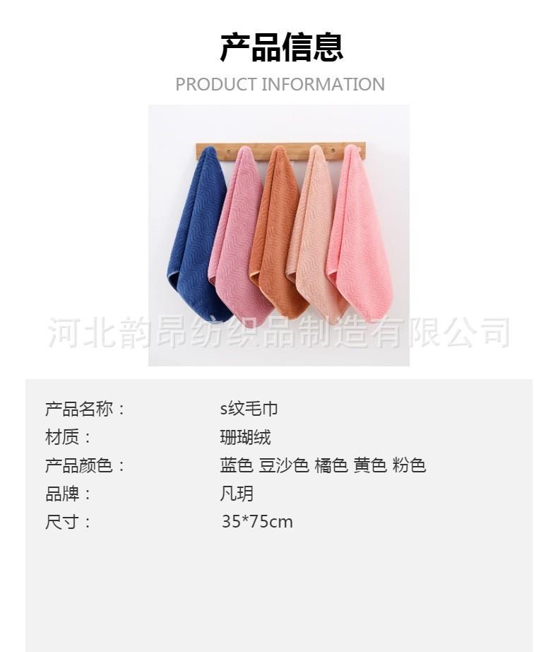Nueva toalla de terciopelo coral con patrón S, lisa, simple, gruesa, suave, absorbente, de secado rápido, para el hogar, venta al por mayor de fábrica s
