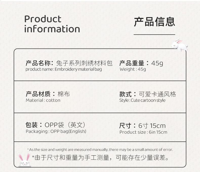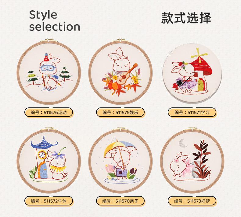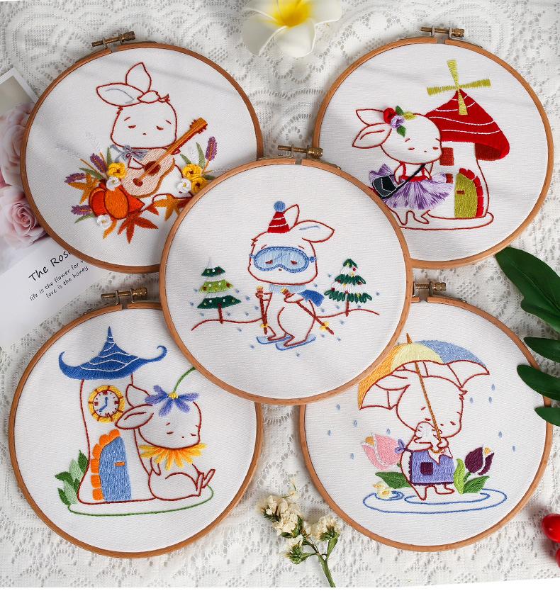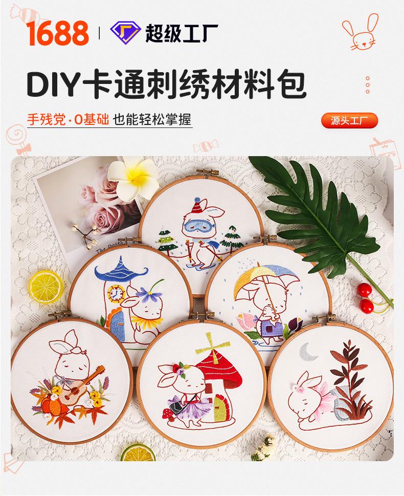 Paquete de material de bordado de la serie Rabbit, hecho a mano, para niños, original, de Suzhou, fábrica de bordado, entrada directa, tela de punto de cruz