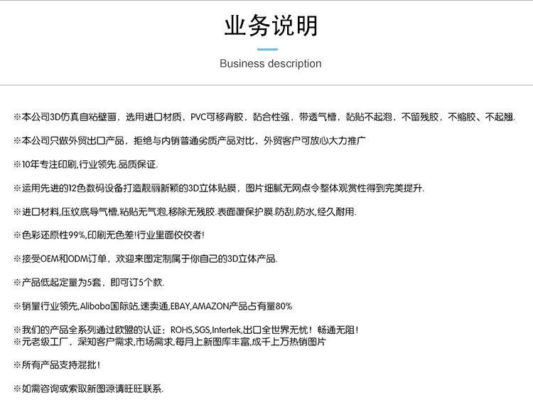 Fábrica de calcomanías creativas para puertas, proveedor confiable de plataformas de comercio exterior. Los pedidos se envían en 24 días y ofrecemos personalización según planos y tamaños. Mei Ji invita cordialmente a los franquiciados ideales de todo el mundo y agradece sus consultas y compras de calcomanías de simulación 3D para puertas.