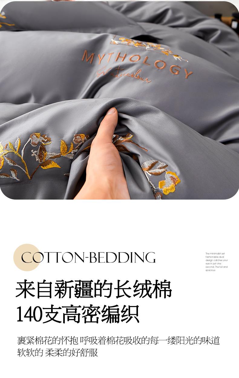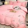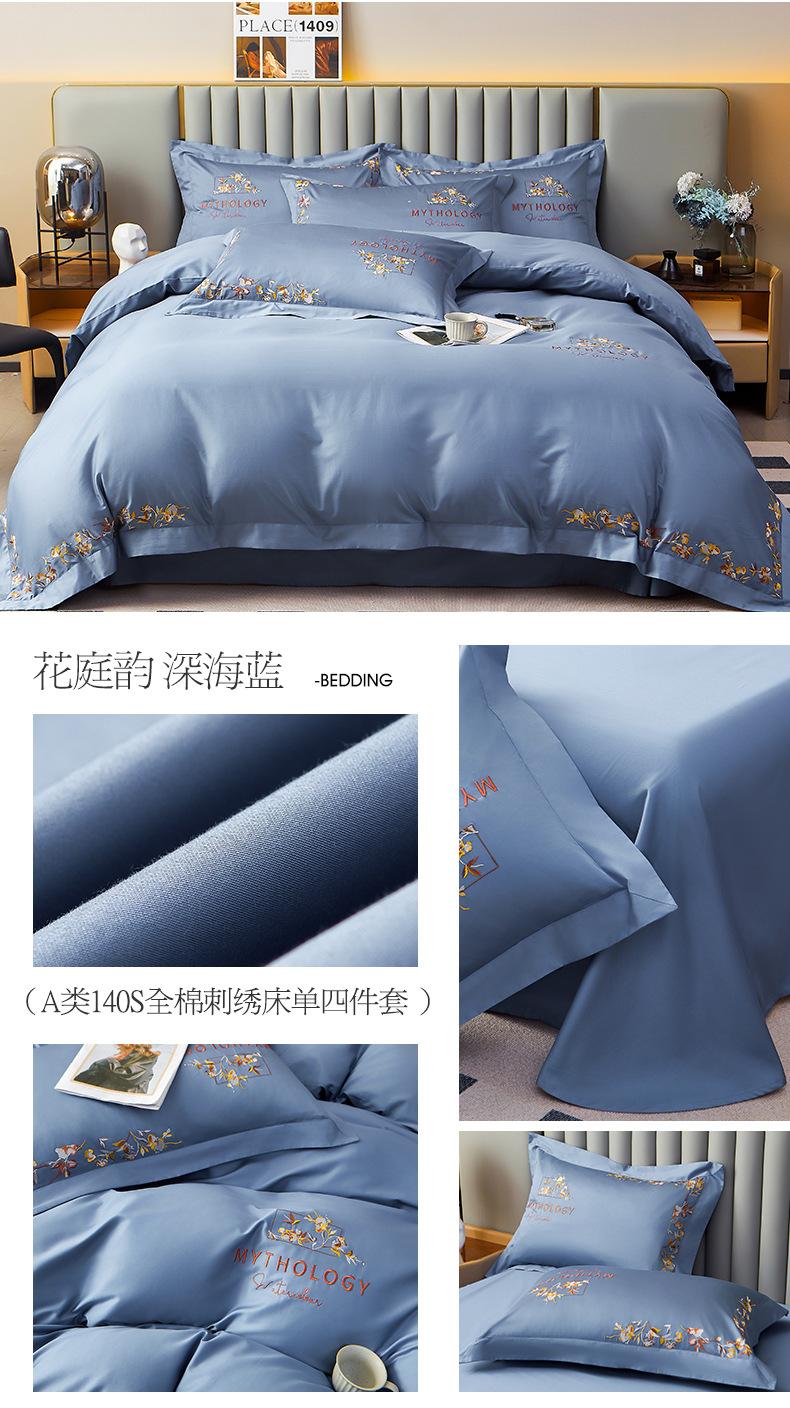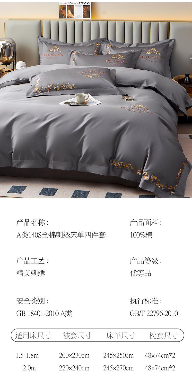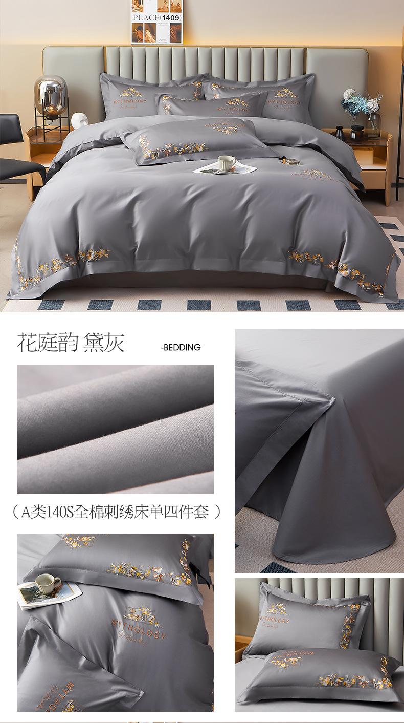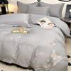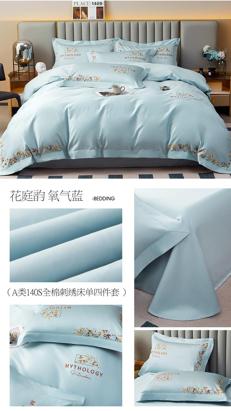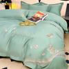 Juego de cuatro piezas de algodón de fibra larga grado A maternal e infantil 140 bordado funda nórdica de algodón de alta calidad sábana gorro de cama de algodón de lujo ligero