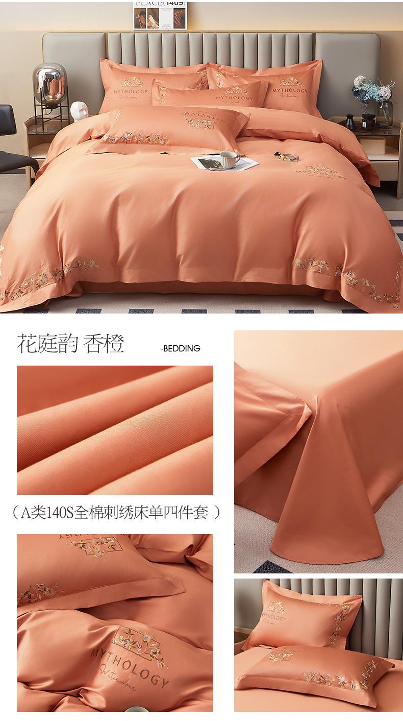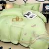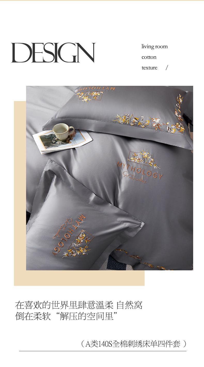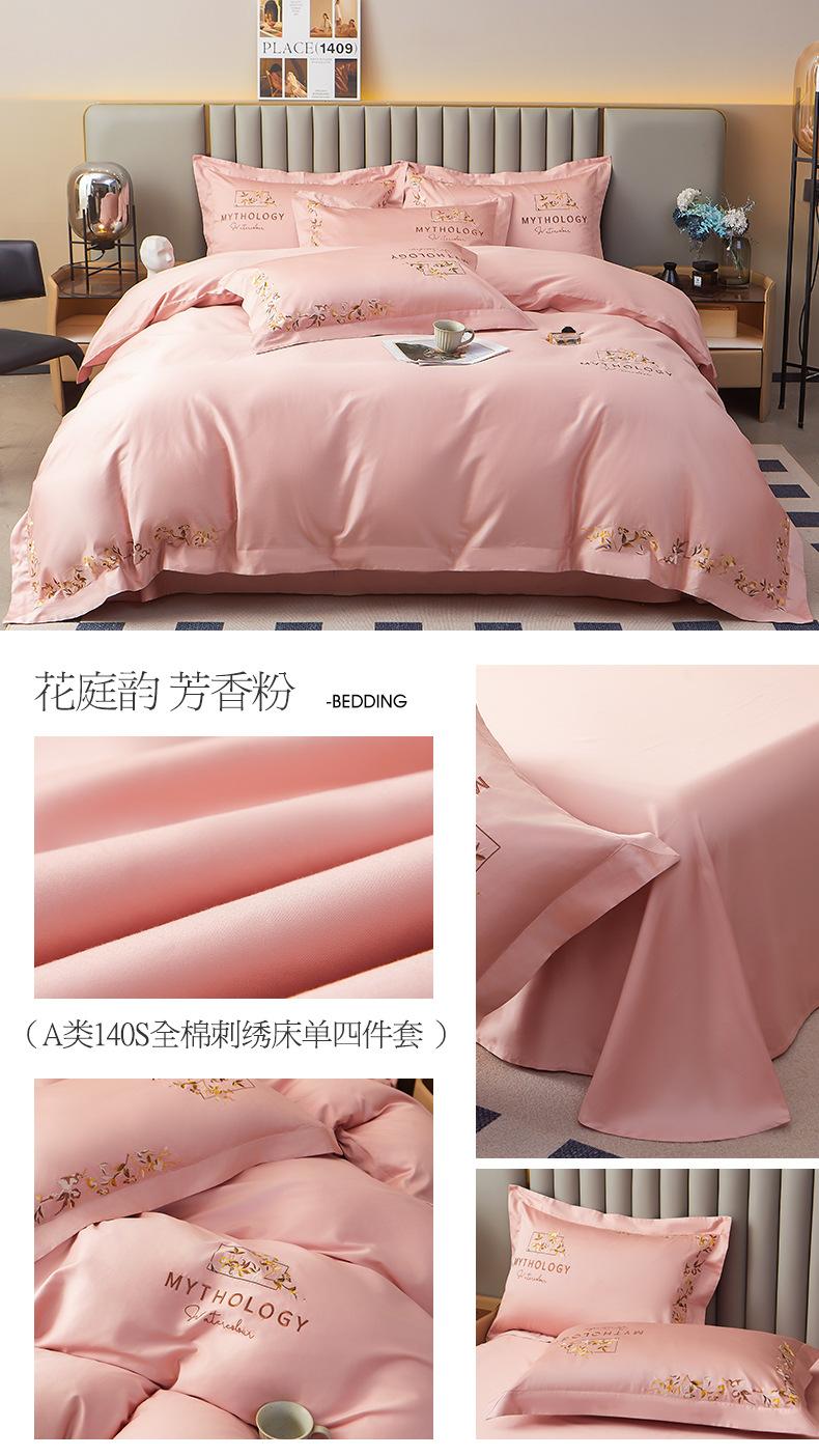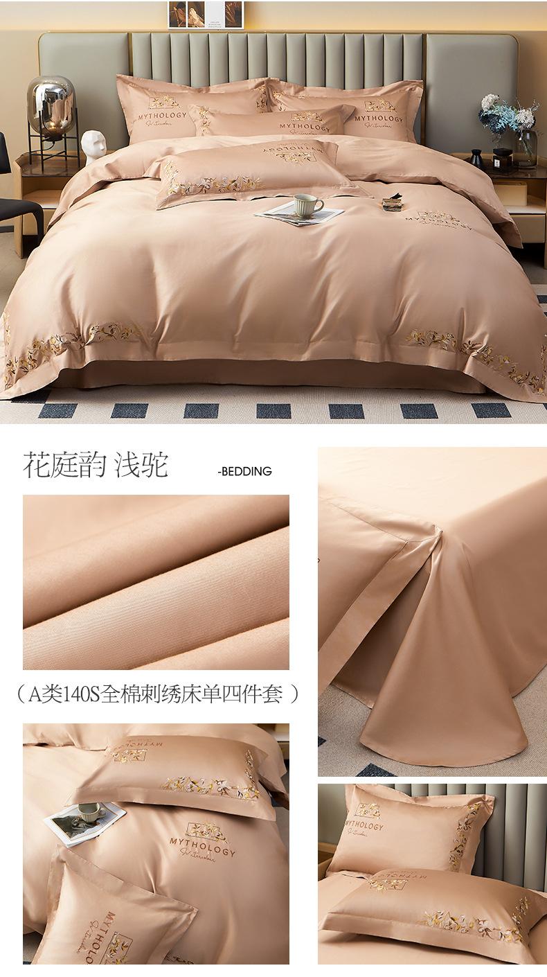 Juego de cuatro piezas de algodón de fibra larga grado A maternal e infantil 140 bordado funda nórdica de algodón de alta calidad sábana gorro de cama de algodón de lujo ligero
