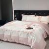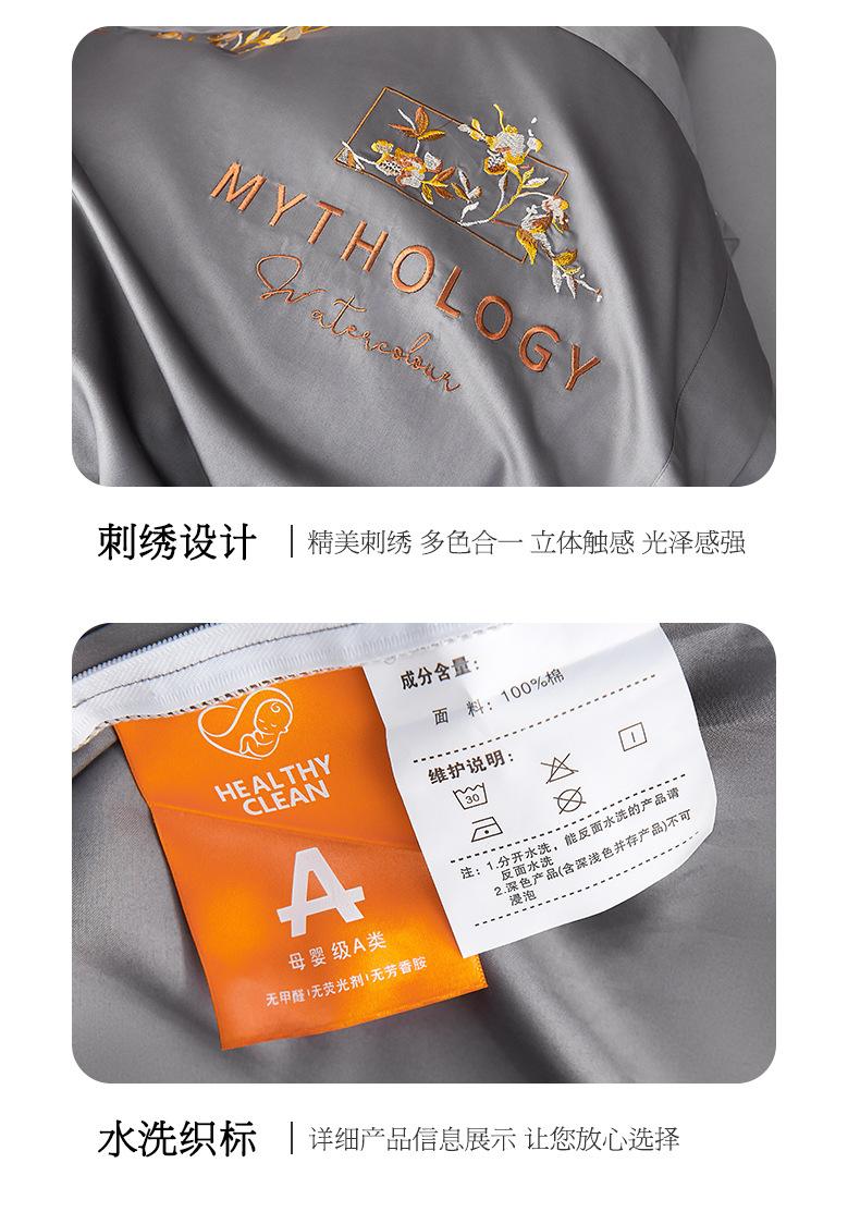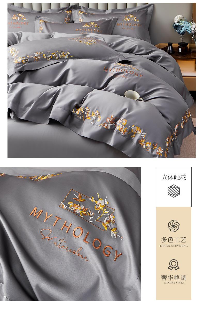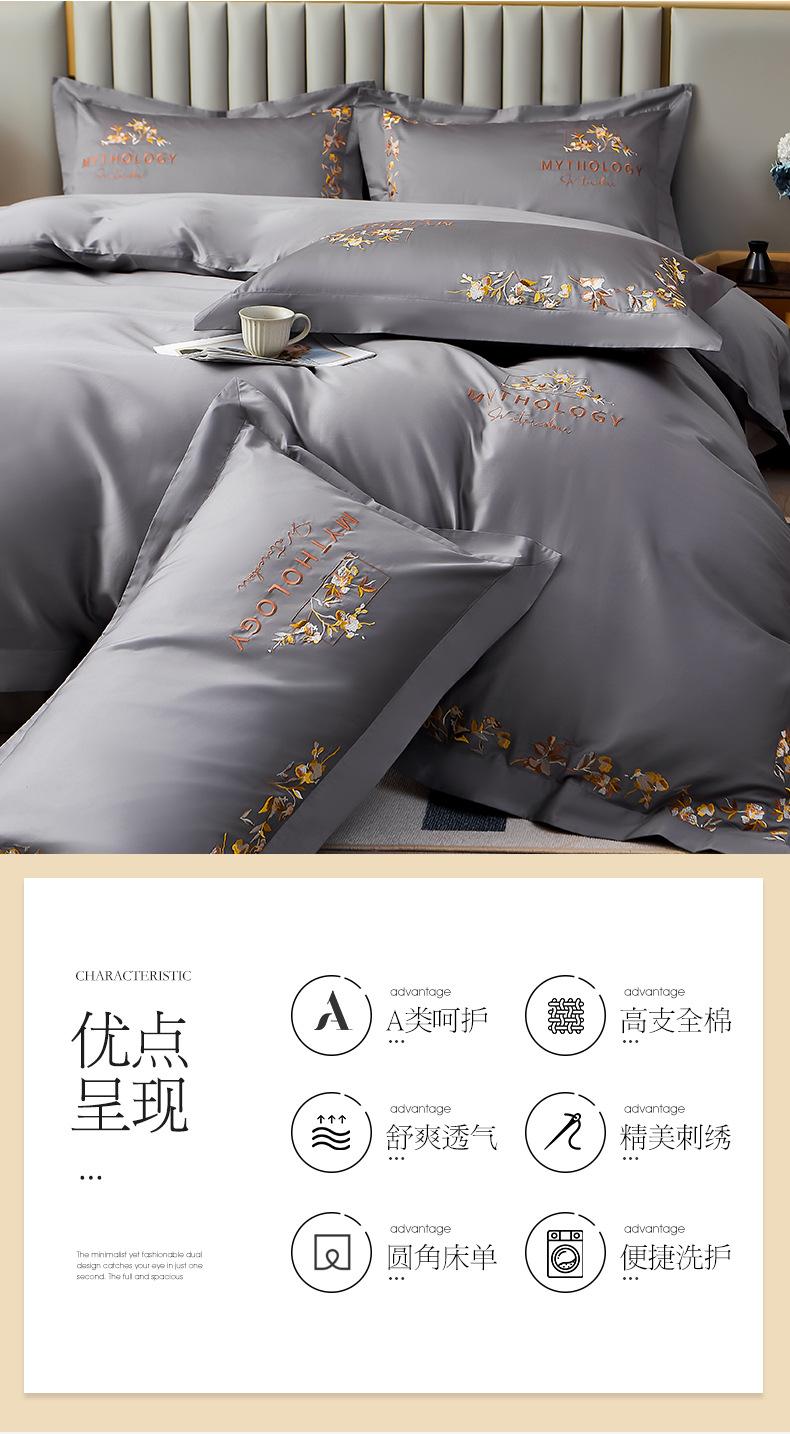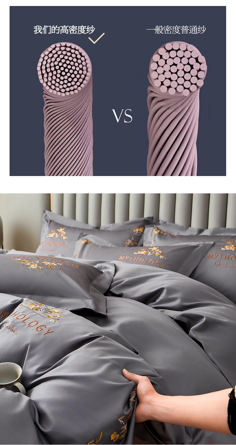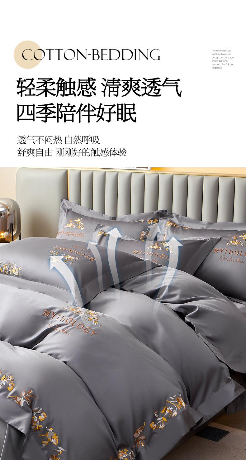 Juego de cuatro piezas de algodón de fibra larga grado A maternal e infantil 140 bordado funda nórdica de algodón de alta calidad sábana gorro de cama de algodón de lujo ligero