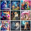 Pintura de diamante 5D DIY con diseño de gato de dibujos animados de Amazon, flor, lindo gato, diamante redondo completo, decoración para sala de estar, cuadro colgante, venta directa de fábrica