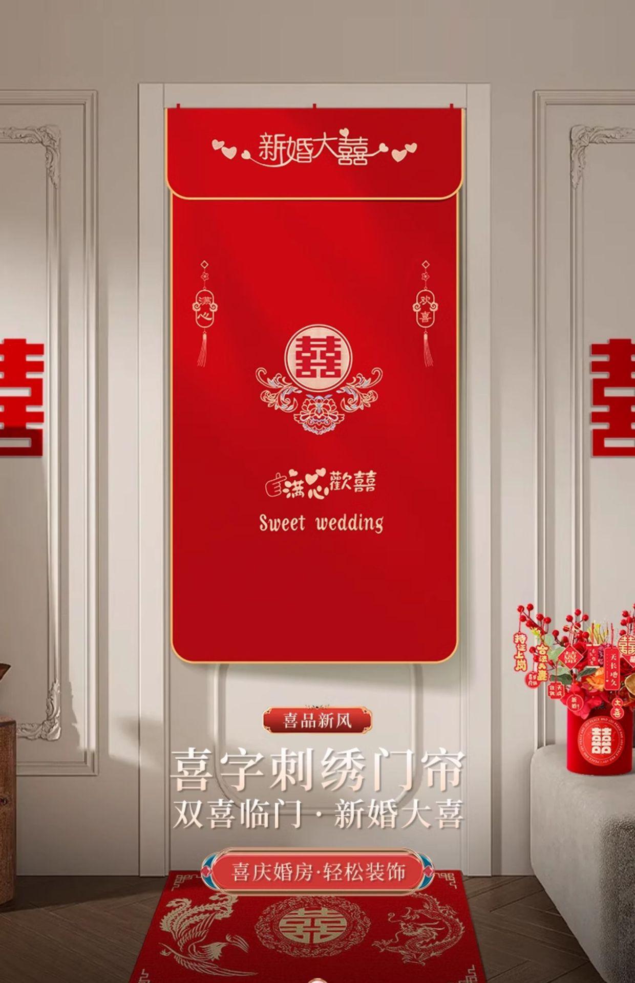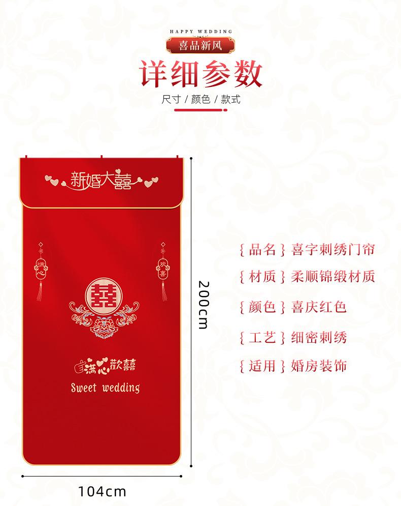 Cortina de puerta en forma de XI para boda decoración de habitación de boda puerta decoración festiva de Casa Nueva bordado rojo cortina XI suministros para boda
