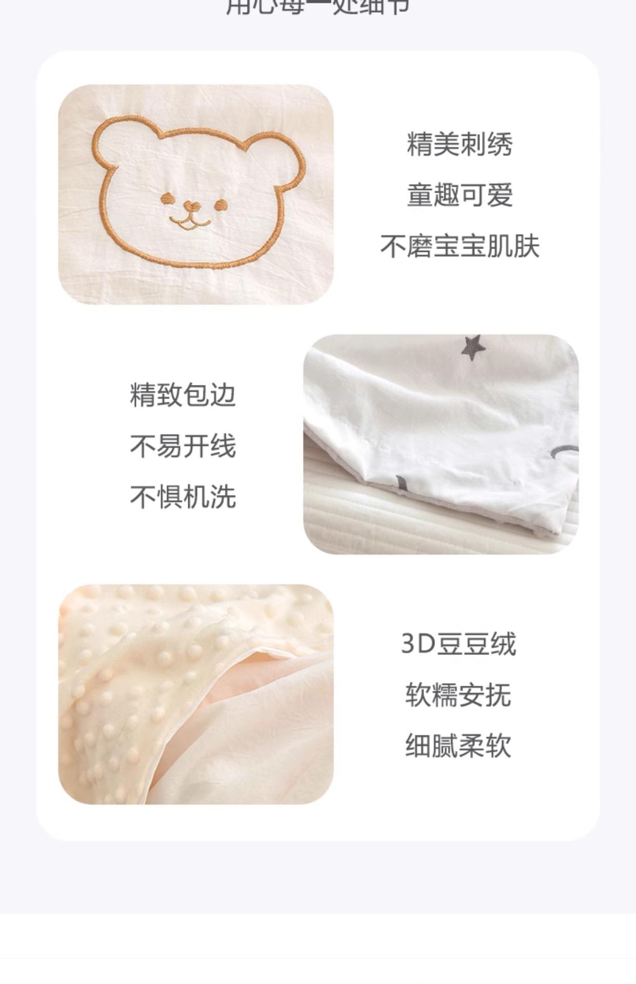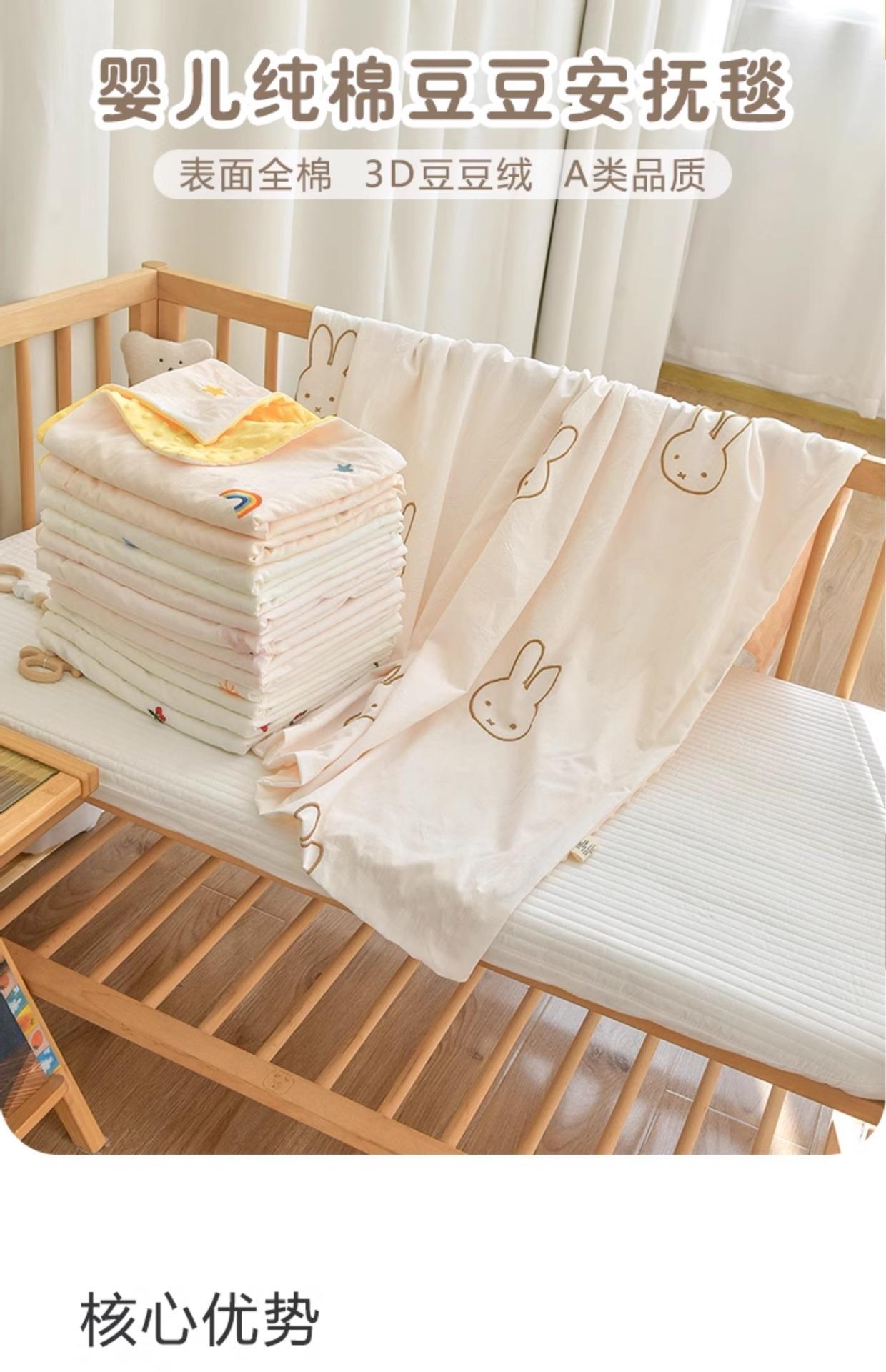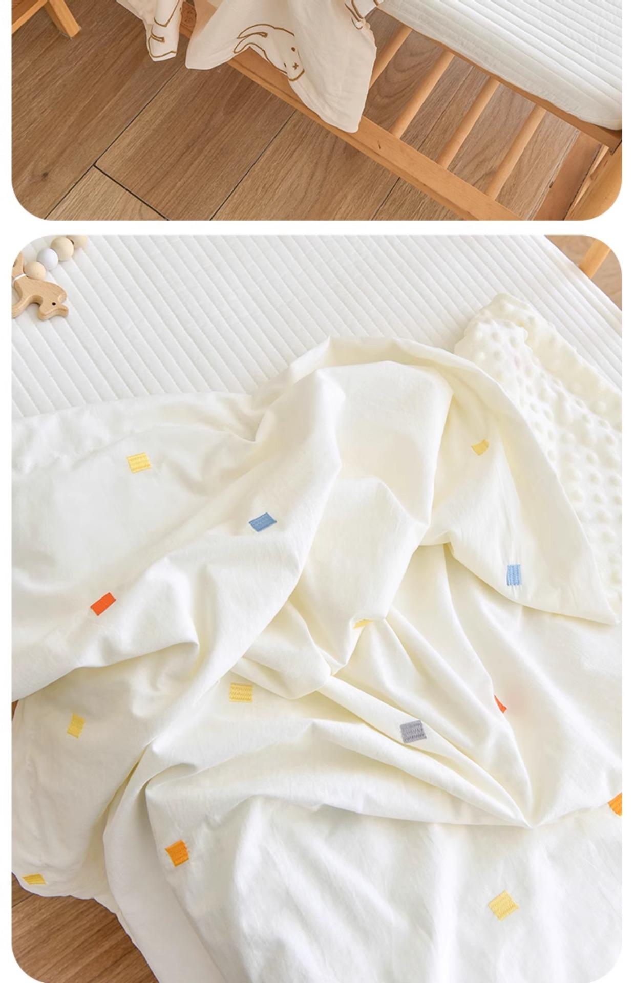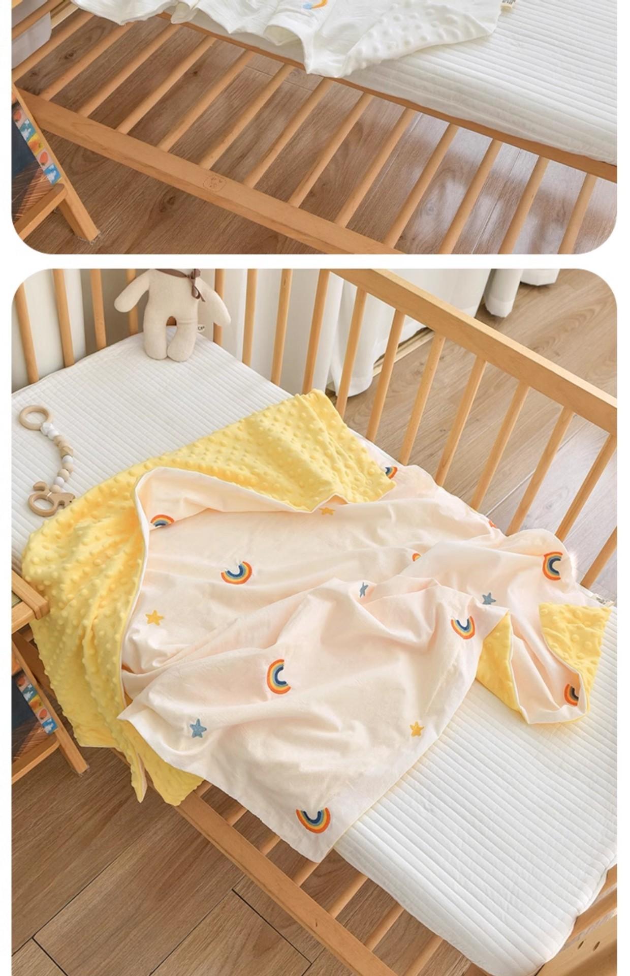 Consejos de lavado: Lavar a mano a 30 grados, lavar a máquina en modo suave. O póngalo en una bolsa de lavandería, no lo exponga al sol, no lo enjuague ni lo hierva en agua a alta temperatura. Material: Un lado 100% algodón Un lado minky 3D Tamaño: Pequeño: 70 x 100 cm, adecuado para bebés de 0 a 1 año. Mediano: 100*120cm adecuado para bebés de 0 a 3 años Tamaño grande: 120*150cm adecuado para bebés de 3 a 8 años (Dimensiones medidas a mano, puede haber ligeros errores) El material de superficie de algodón puro se encogerá ligeramente, lo cual no afecta el uso. El patrón de corte y la dirección son aleatorios, tenga cuidado al tomar las fotos