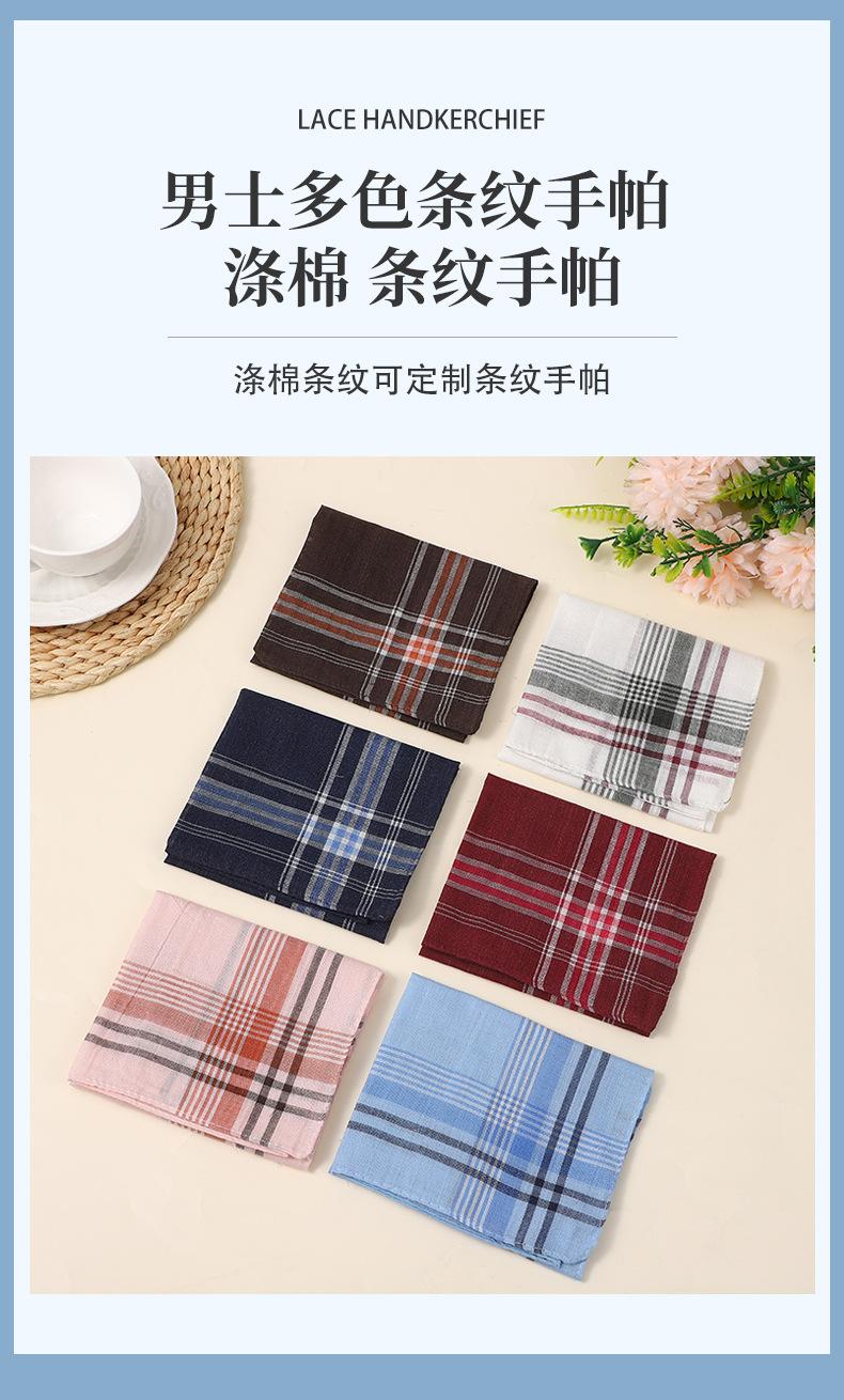 2024 Nuevo Pañuelo para Hombre de Color Claro a Cuadros Rayado Poliéster Algodón Pañuelo Toalla de Bolsillo Toalla Pequeña Cuadrado Clásico Pañuelo