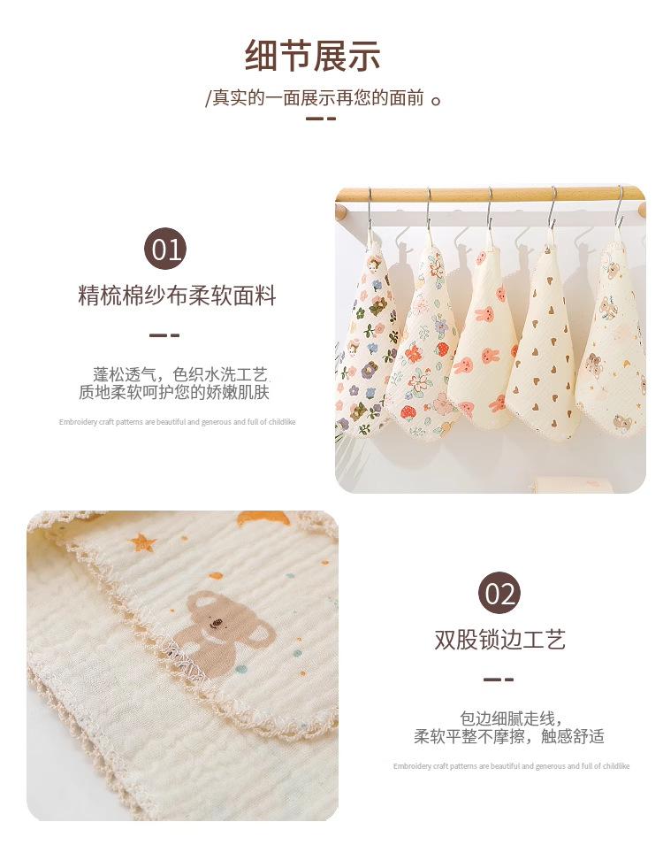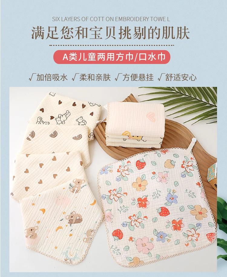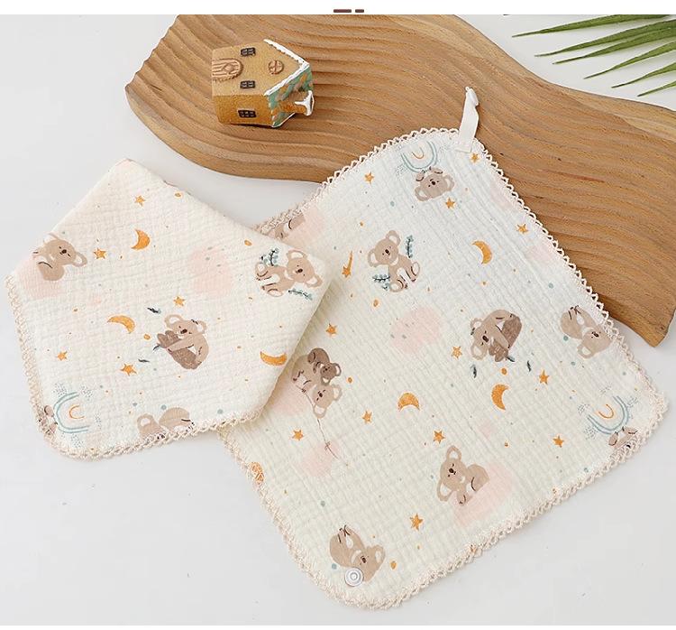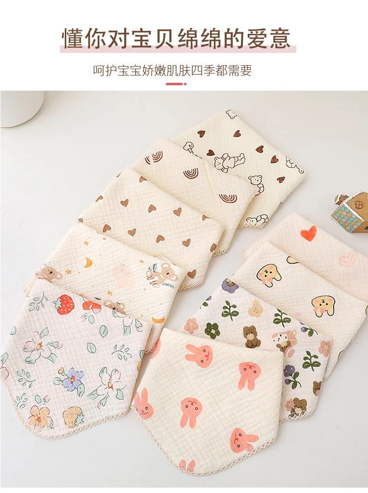 Toalla cuadrada pequeña de algodón de colores de gasa de doble uso para bebés, toalla facial de dibujos animados para niños, toalla triangular para bebés, toalla para saliva, venta al por mayor