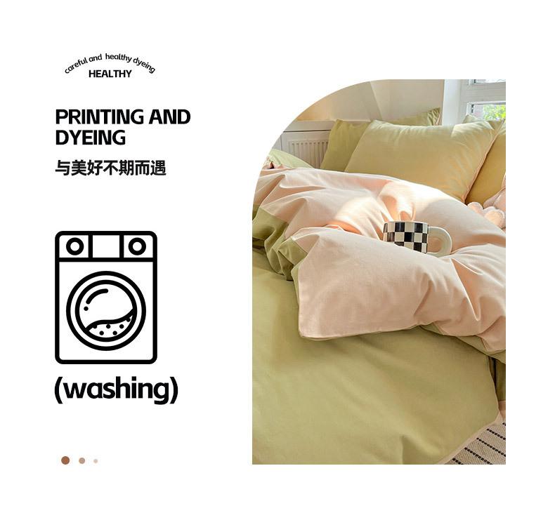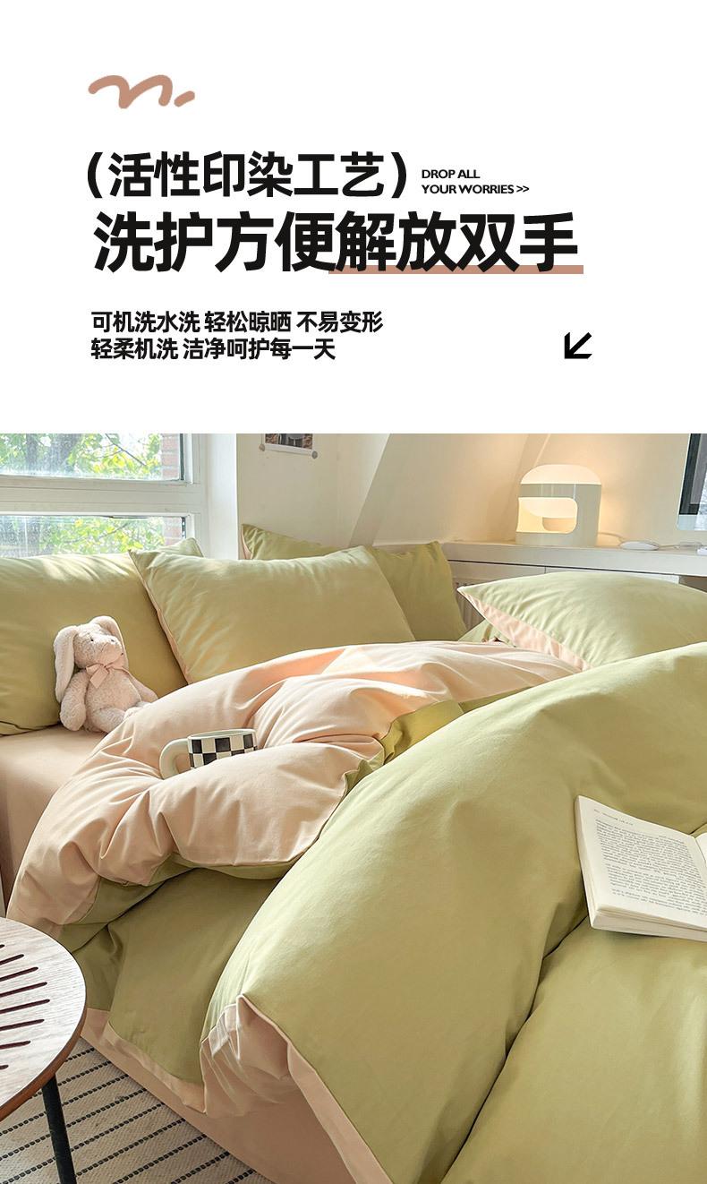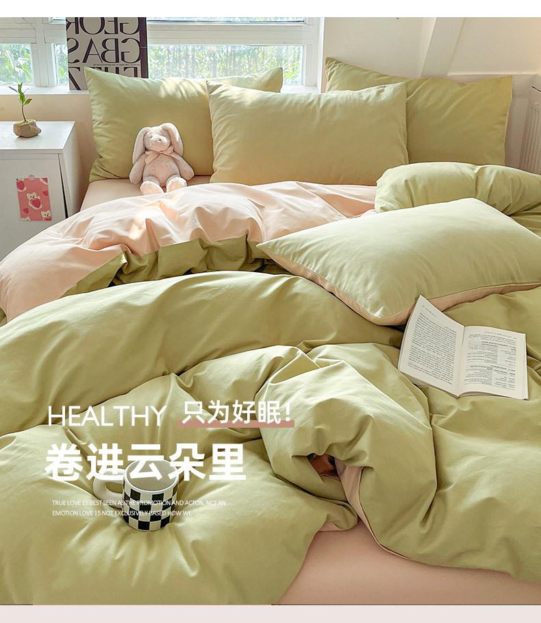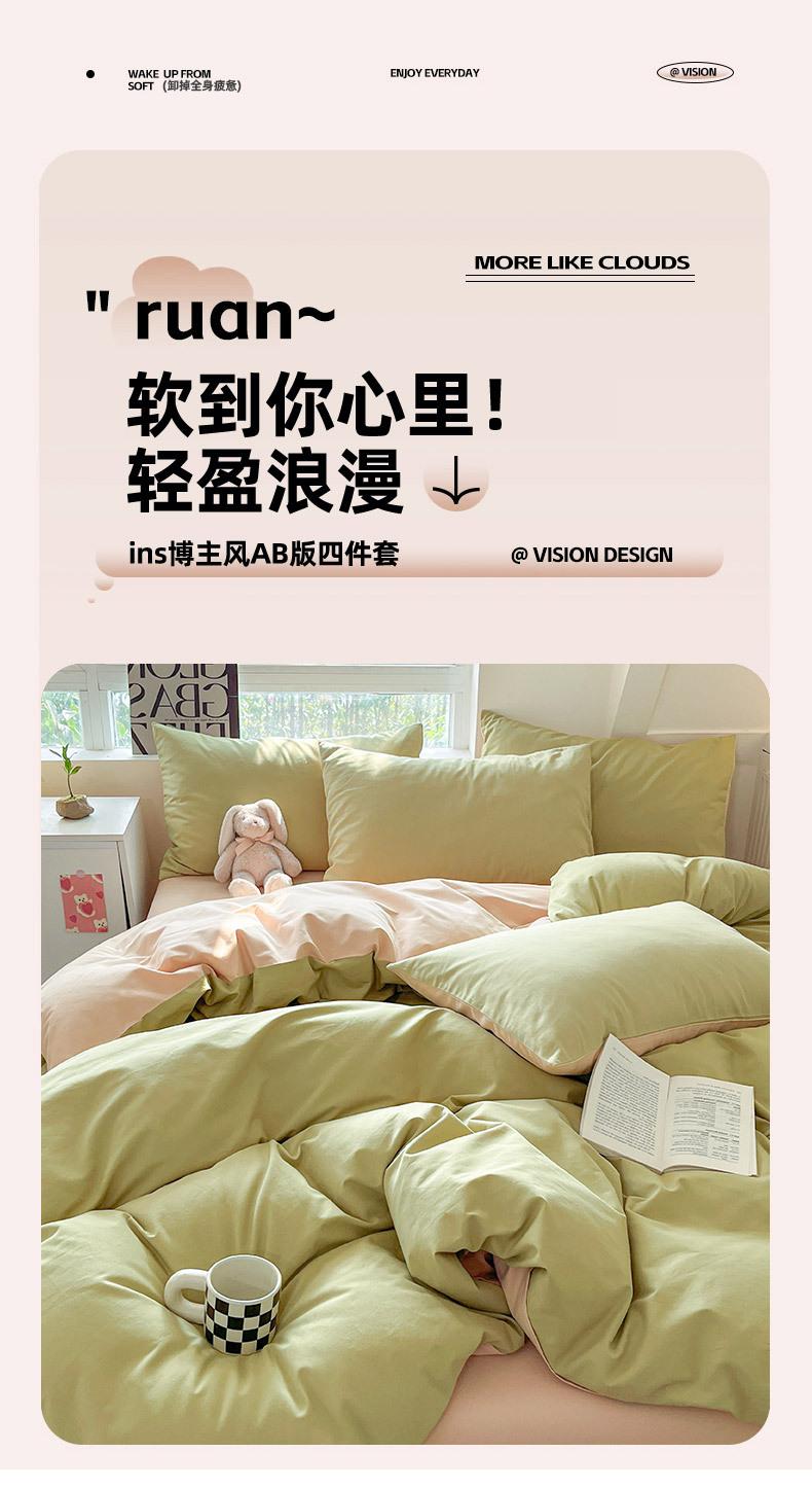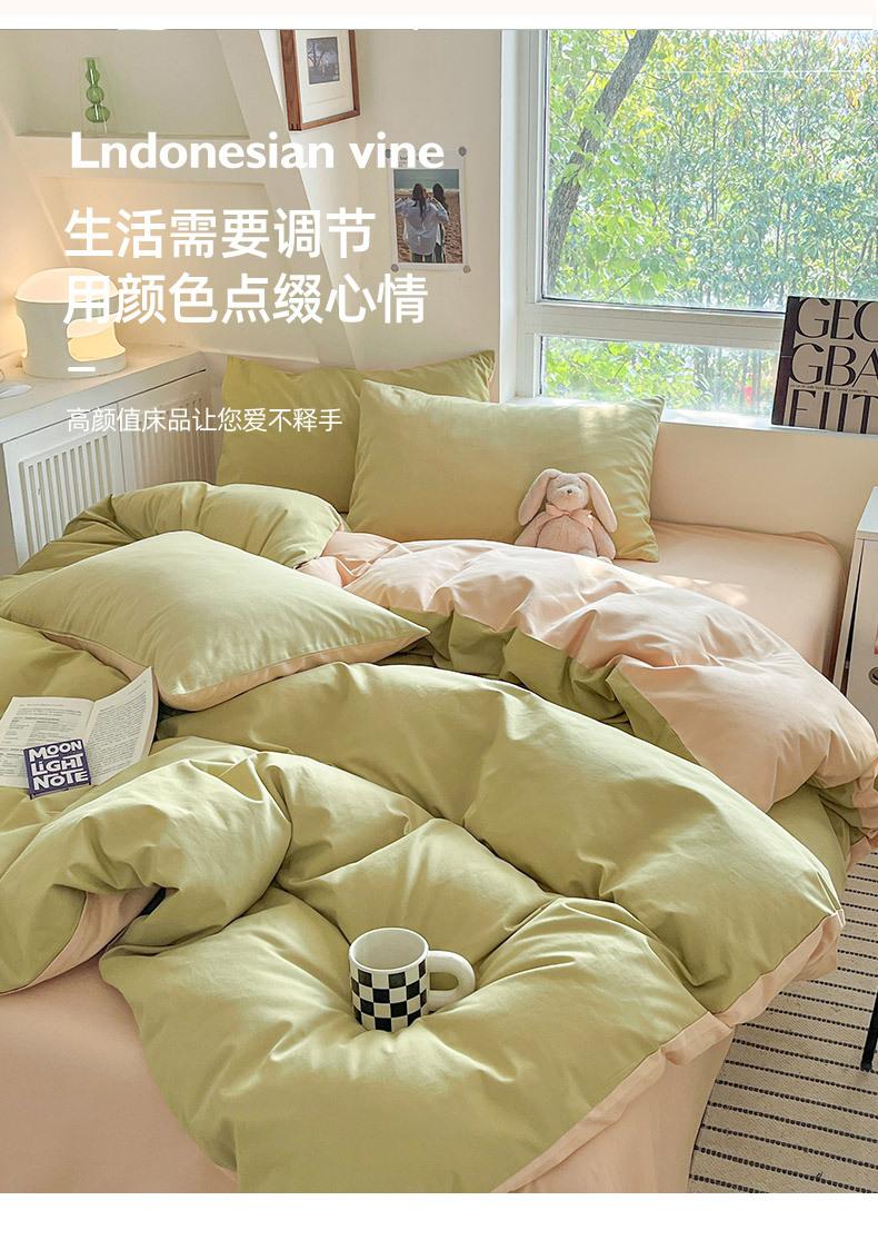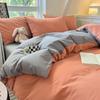 Juego de cama de algodón de cuatro piezas, estilo Ins, de color liso y doble lavado, para dormitorio de estudiantes, sábana y edredón, juego de tres piezas, venta al por mayor