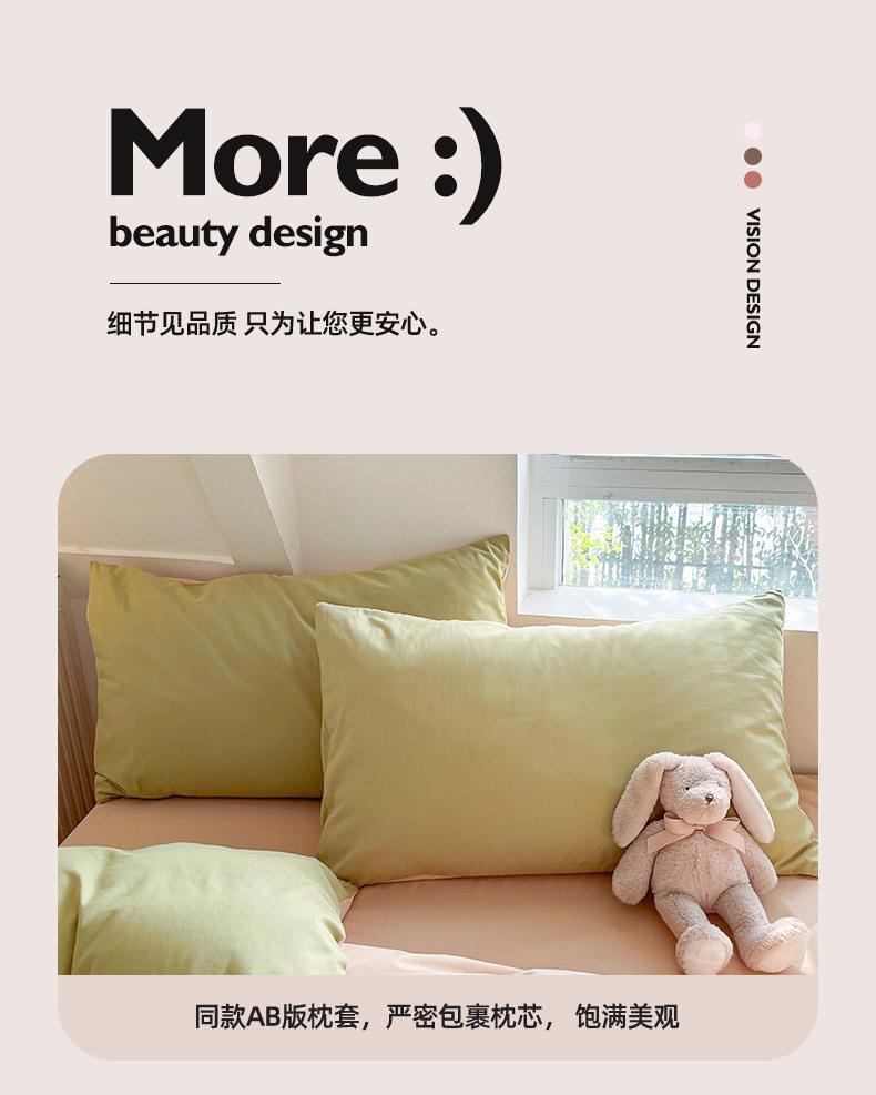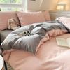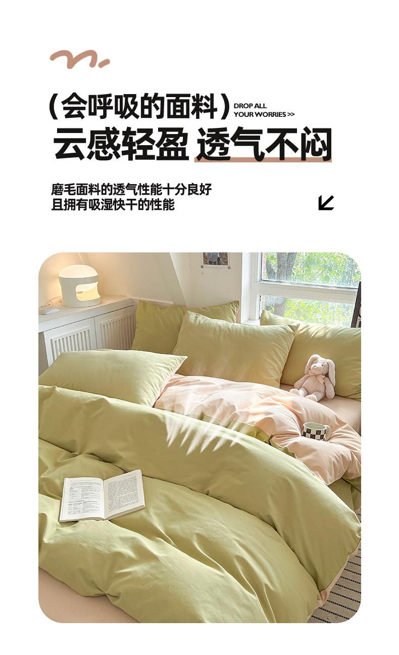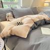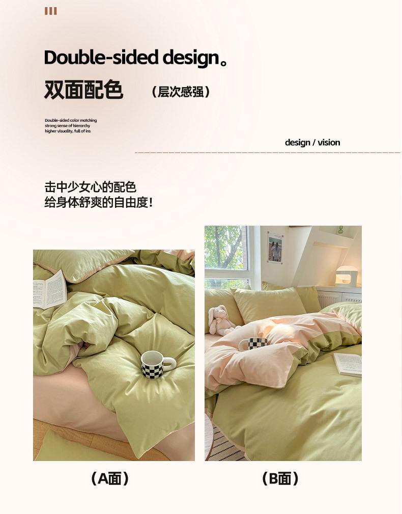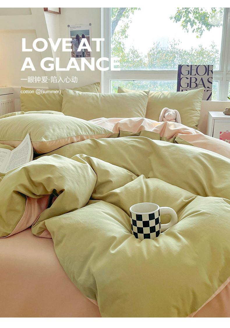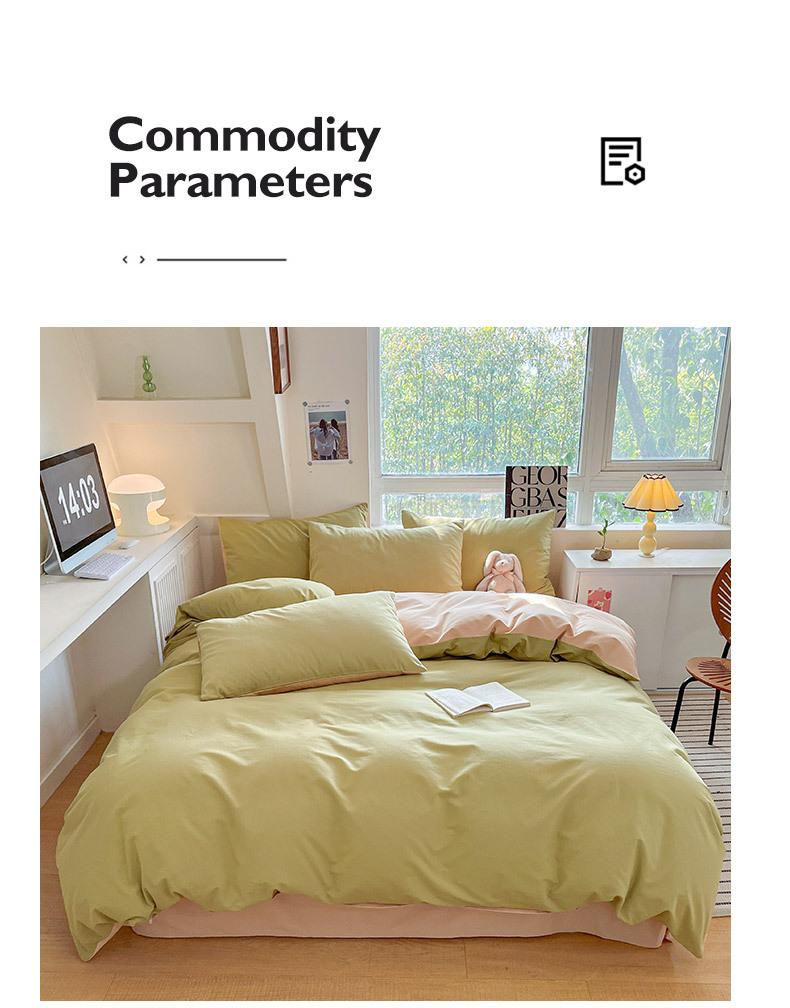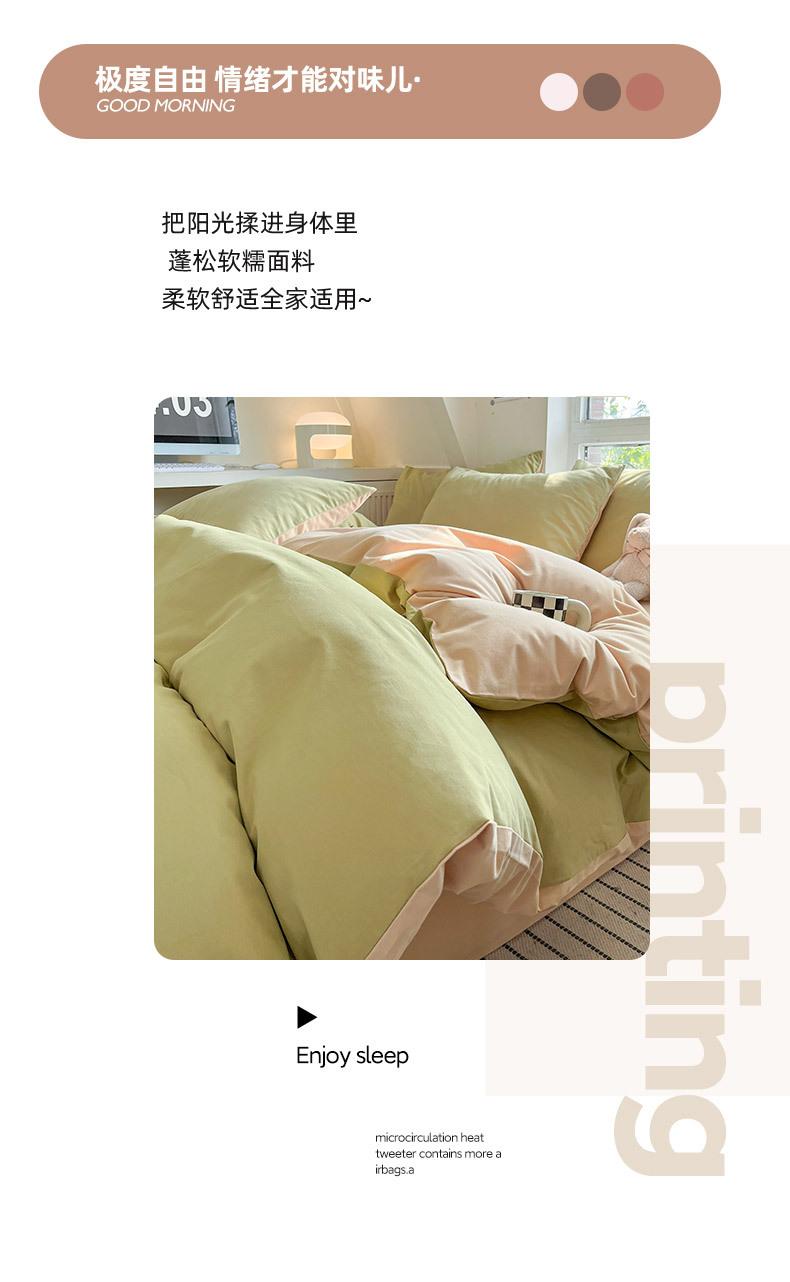 Juego de cama de algodón de cuatro piezas, estilo Ins, de color liso y doble lavado, para dormitorio de estudiantes, sábana y edredón, juego de tres piezas, venta al por mayor