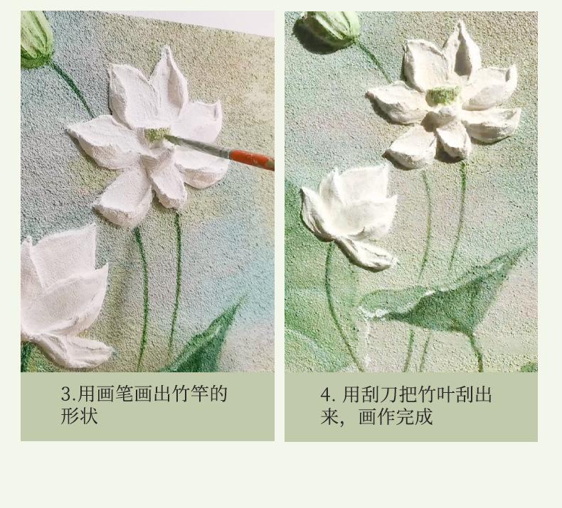 Pintura de Textura de Loto de Verano Paquete de Material DIY Pintura Acrílica Estéreo con Arena de Cuarzo Pintura de Textura de Loto Pintura al Óleo Material para Pintar DIY