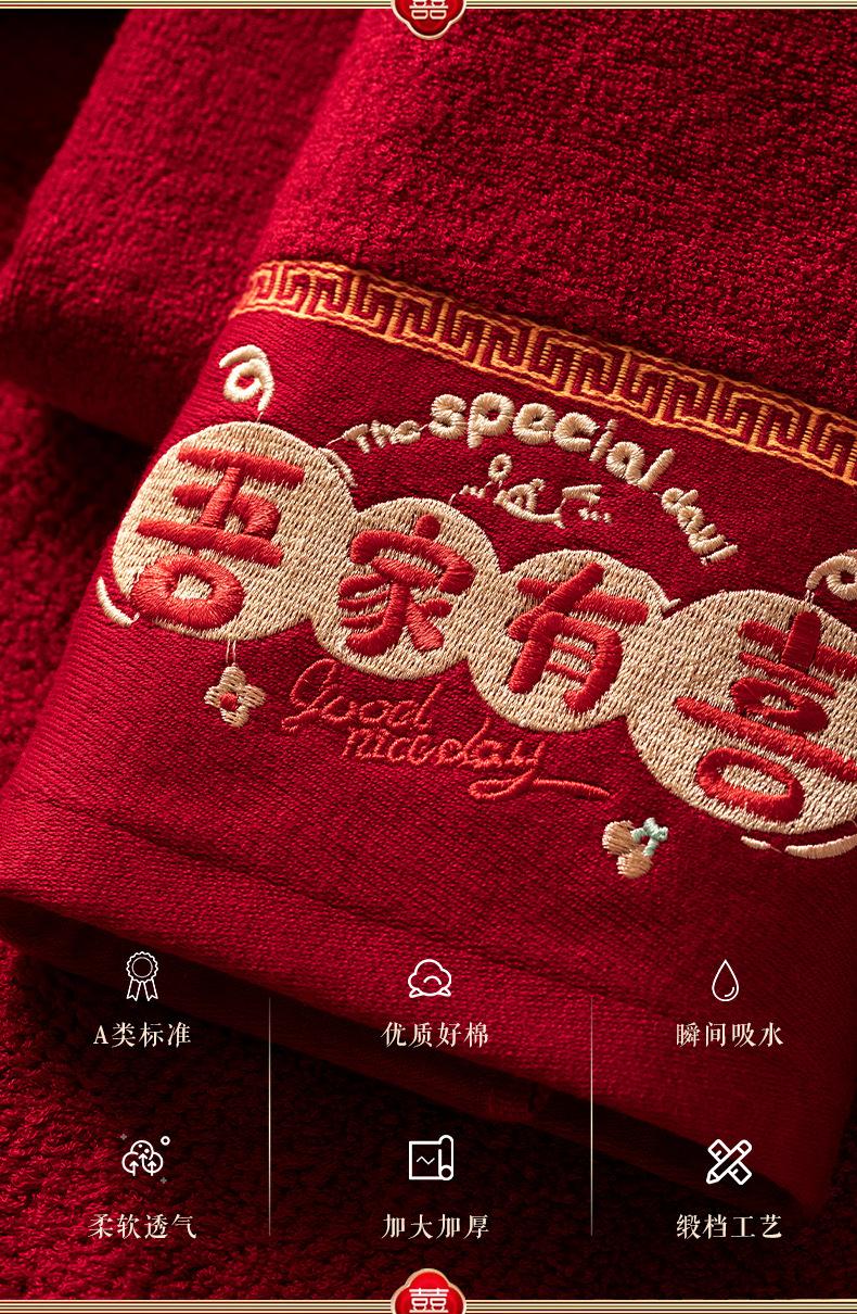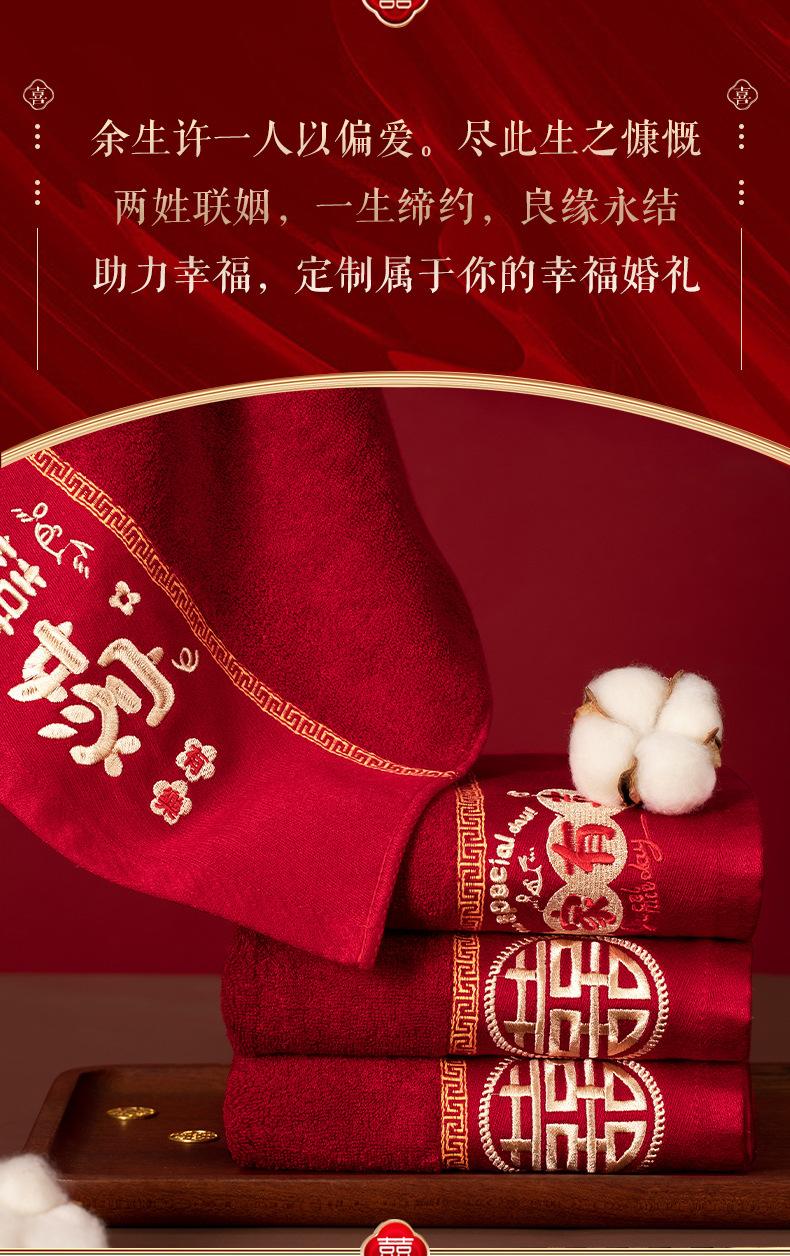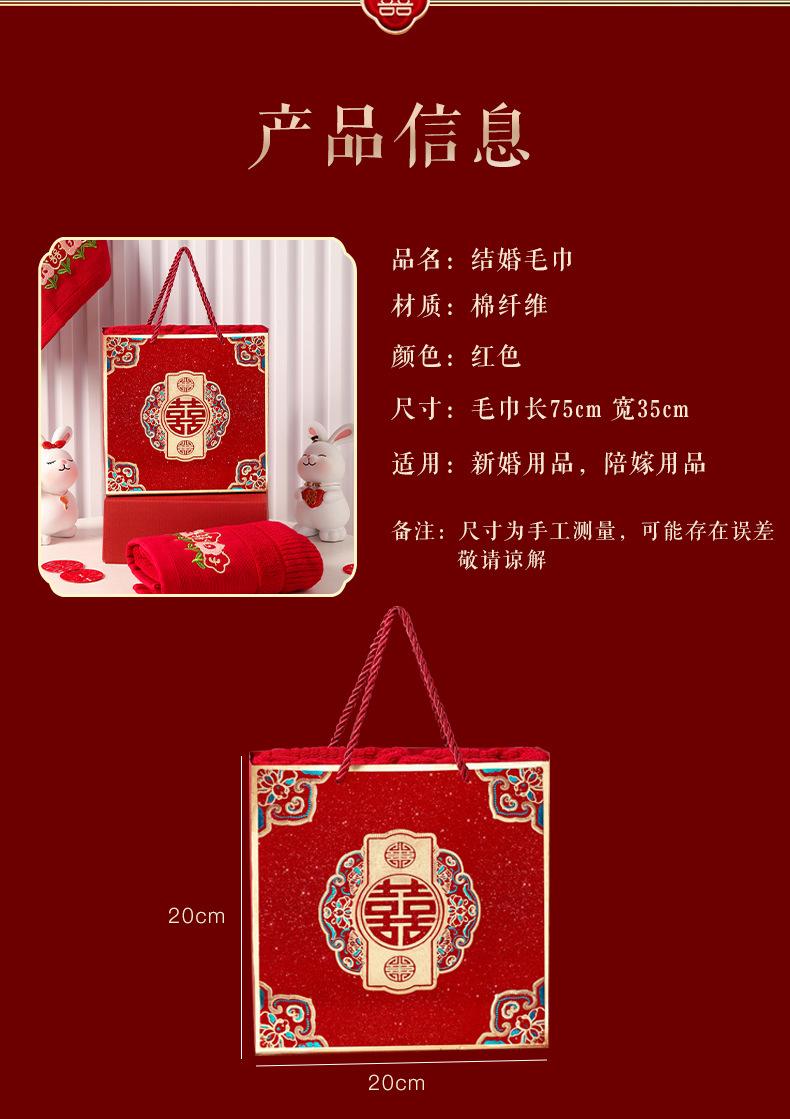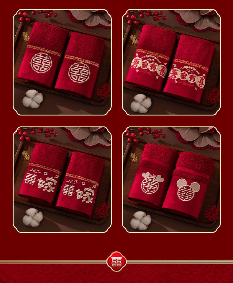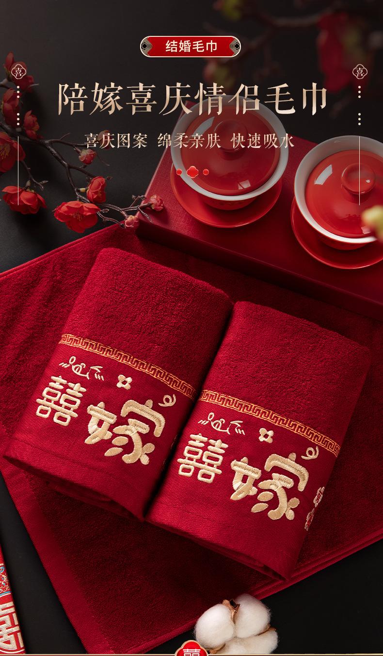 Toalla festiva dote de pareja de boda roja doble carácter Xi regalo de boda suministros de boda