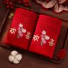 Embroidered happy red towel (one pair) [gift bag packaging]]