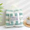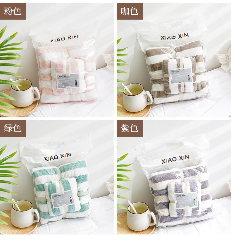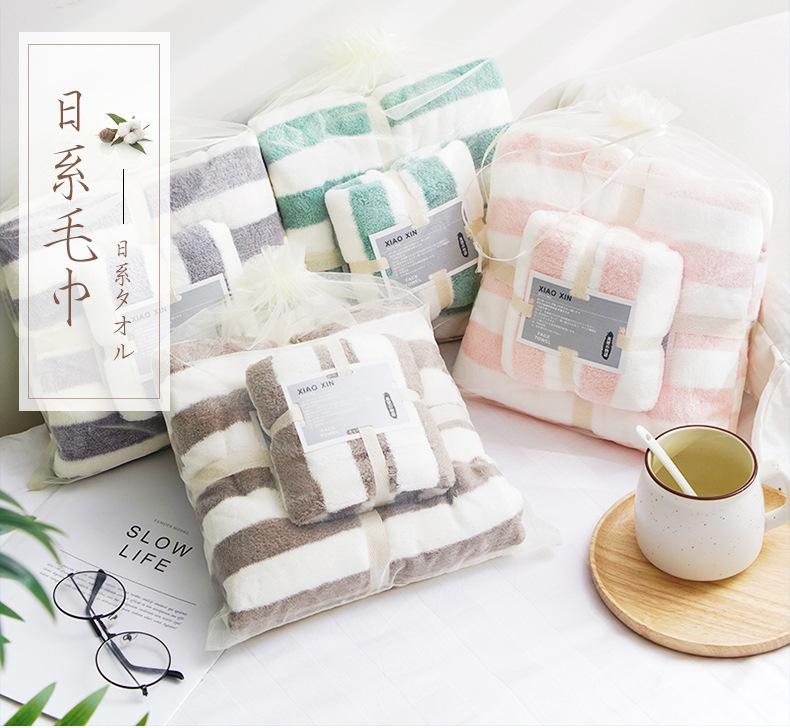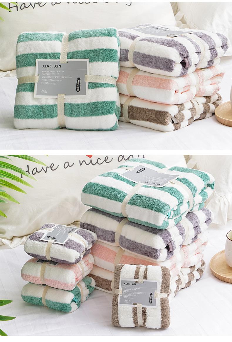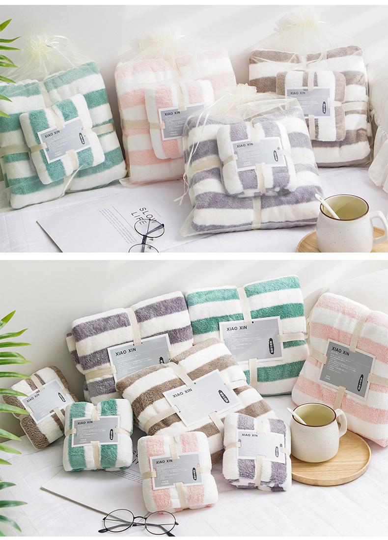 Set de Toalla de Terciopelo Coral y Toalla de Baño, Set de Dos Piezas con Rayas Anchas, Toalla con Tarjetero, Toalla de Baño de Regalo en Caja de Regalo