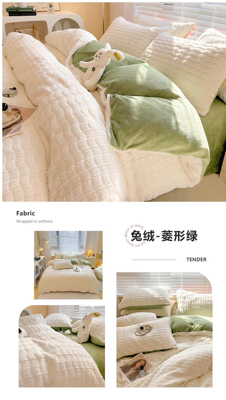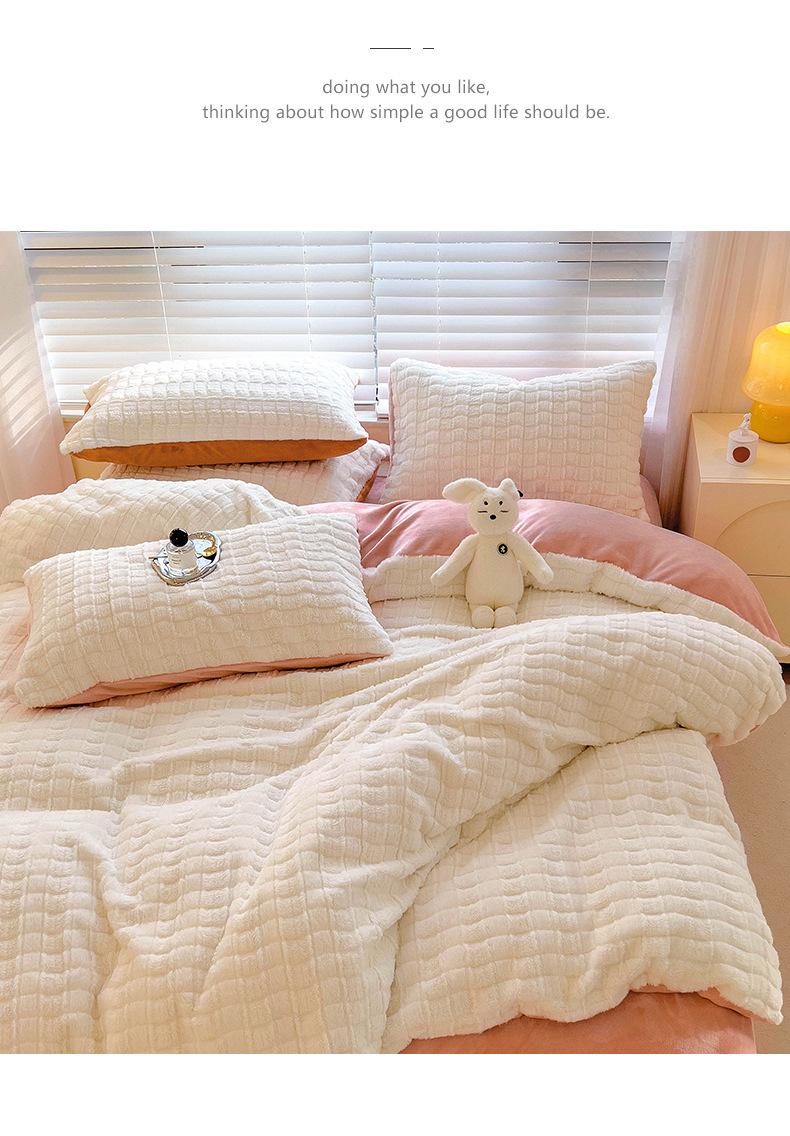 Edredón de terciopelo coral de doble cara de cuatro piezas de terciopelo de leche espesado de invierno, sábana de franela para dormitorio, parte superior de cama de tres piezas