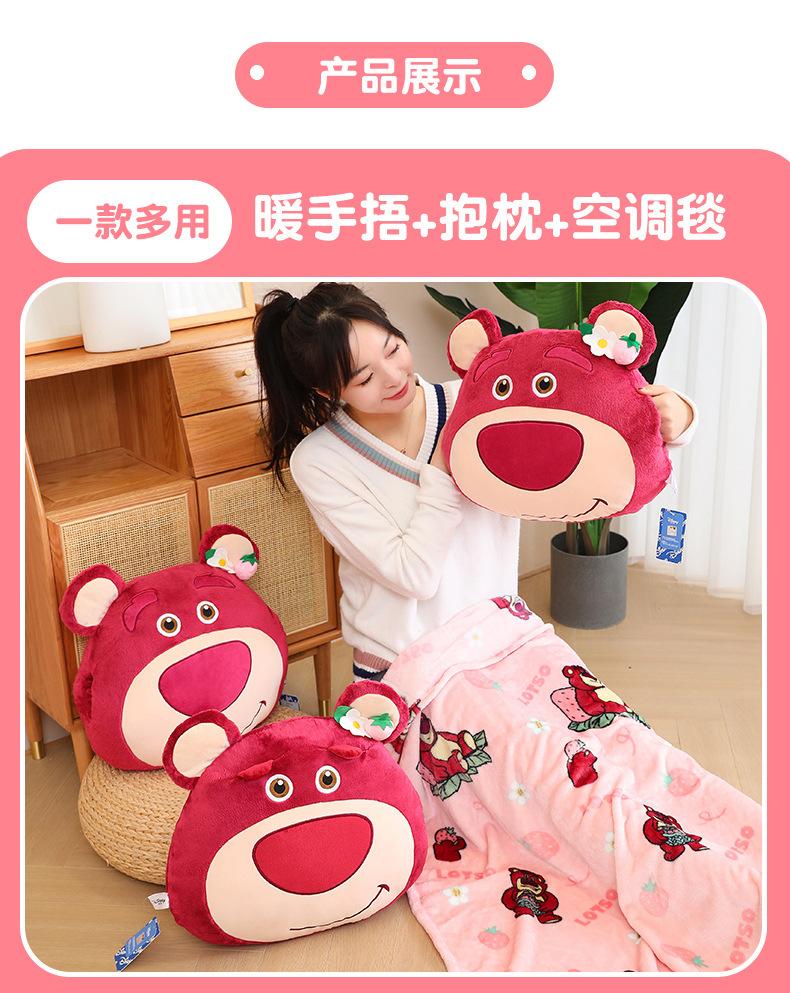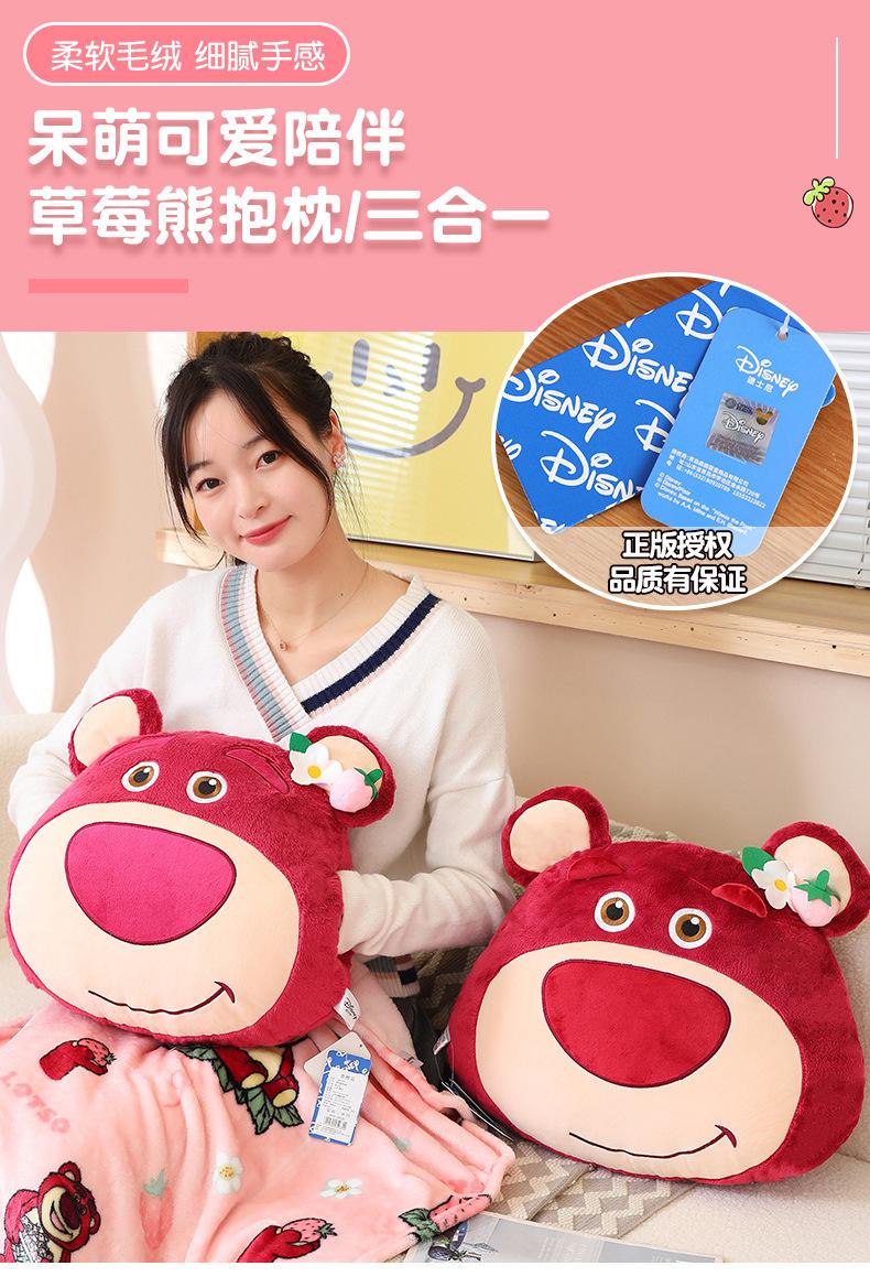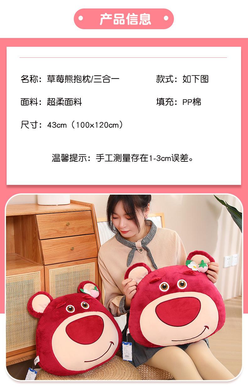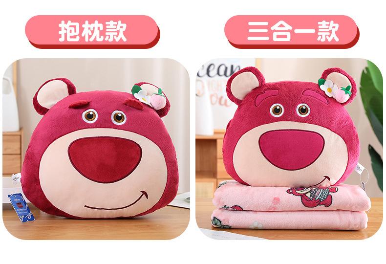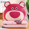 Edredón de almohada de oso de fresa genuino para el hogar Cojín de oso de fresa con manta de aire acondicionado Muñeco de peluche tres en uno