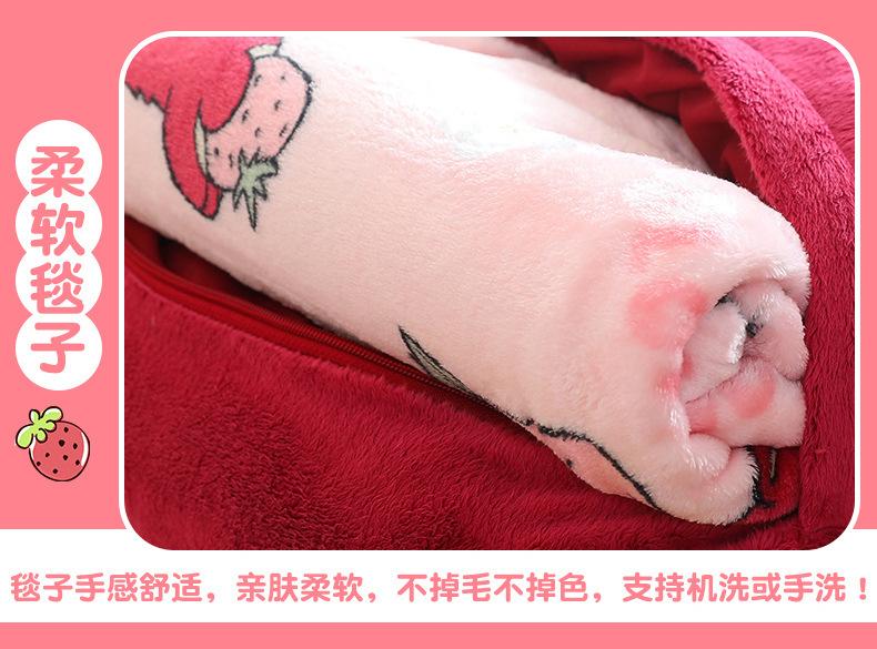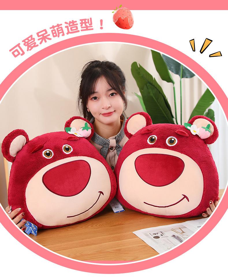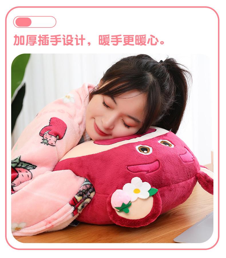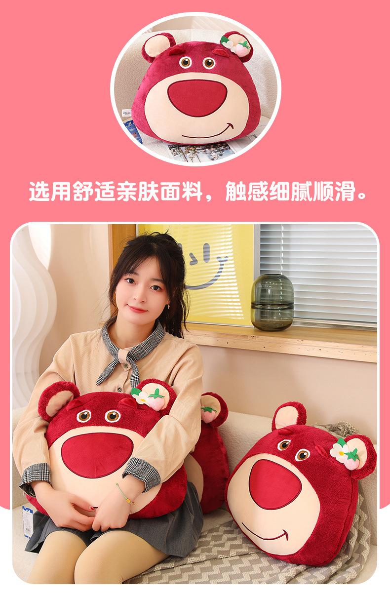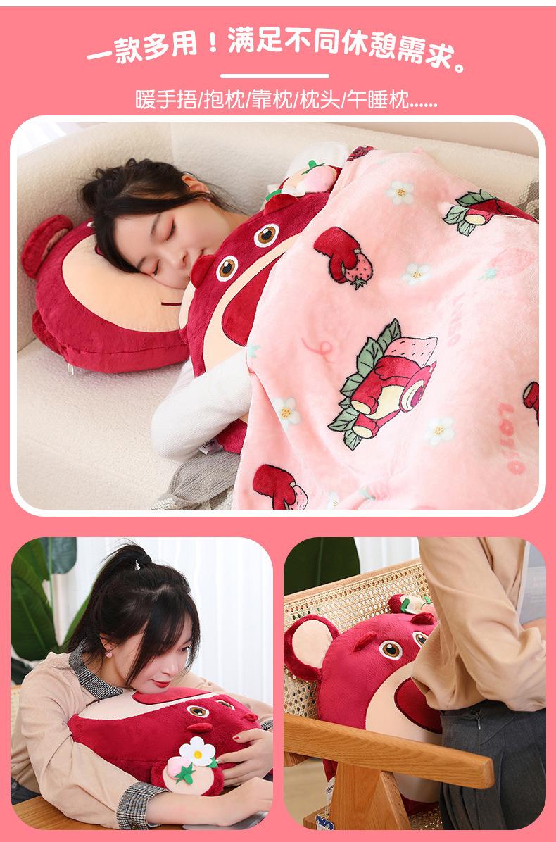 Edredón de almohada de oso de fresa genuino para el hogar Cojín de oso de fresa con manta de aire acondicionado Muñeco de peluche tres en uno