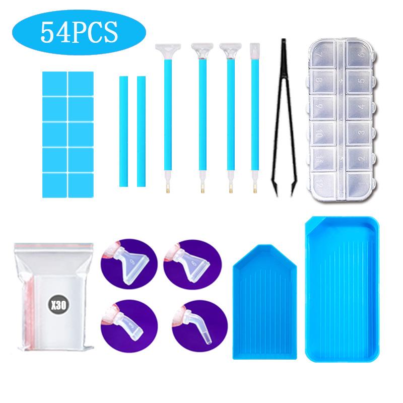 Juego de 54 brocas de diamante con punta de codo, caja de almacenamiento de 12 unidades, embudo, placa de broca de punta grande, multicolor