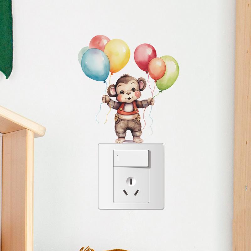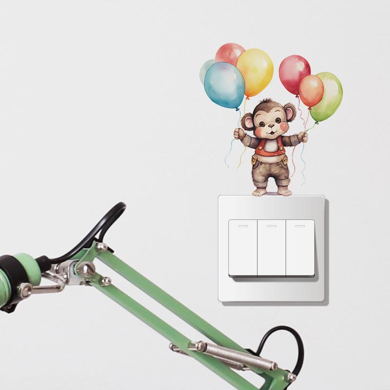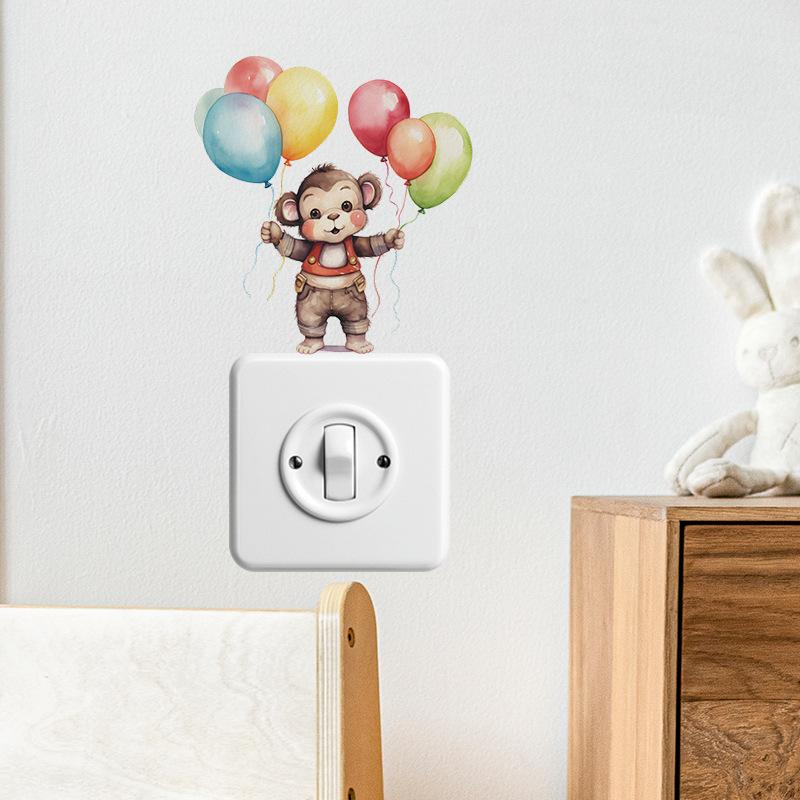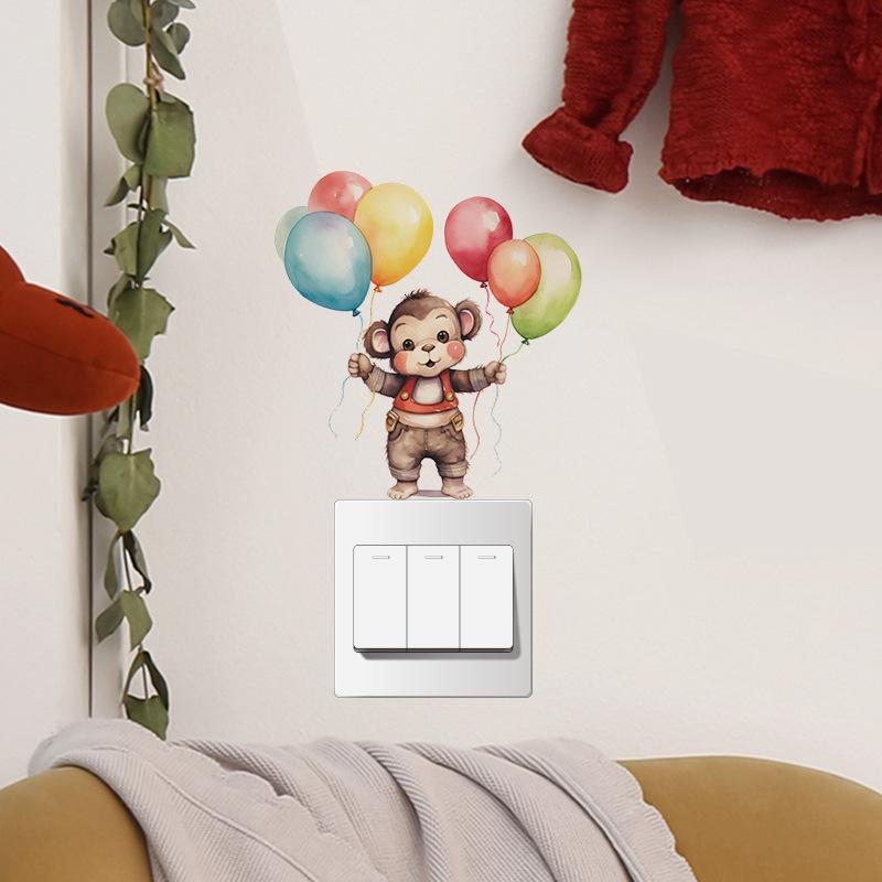 Pegatina decorativa de pared con diseño de mono de dibujos animados para dormitorio infantil, pasillo, sala de estar, interruptor de casa, autoadhesiva, venta al por mayor