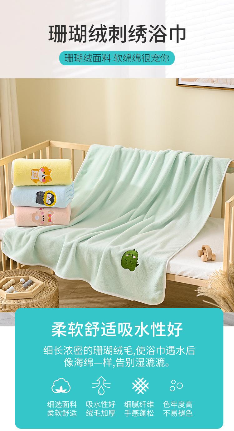 Toalla de baño de coral polar con dibujos animados bordados, manta absorbente suave para recién nacidos, toalla de baño para bebé.