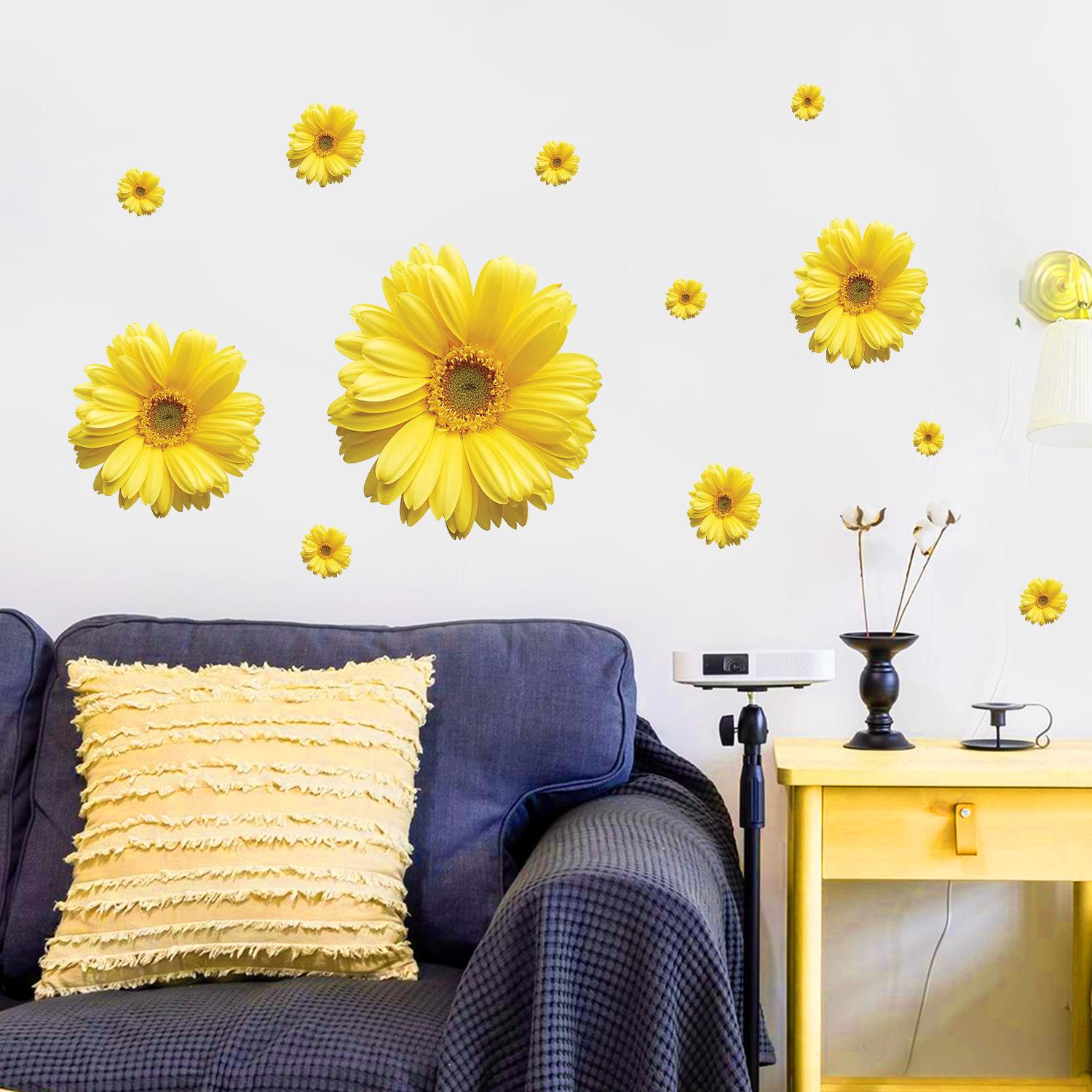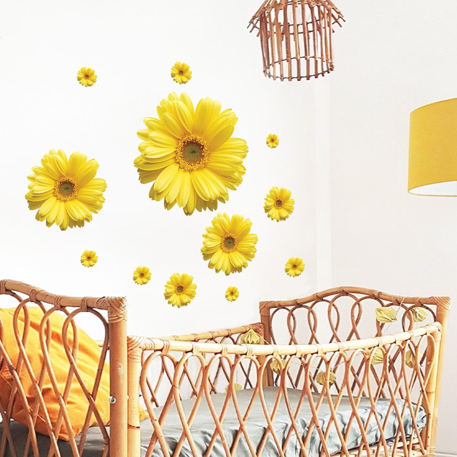 Pegatinas transfronterizas de margaritas de Amazon TEMU Explosions Decora la habitación Dormitorio Pegatinas cálidas Diseño Pegatinas de pared Autoadhesivas