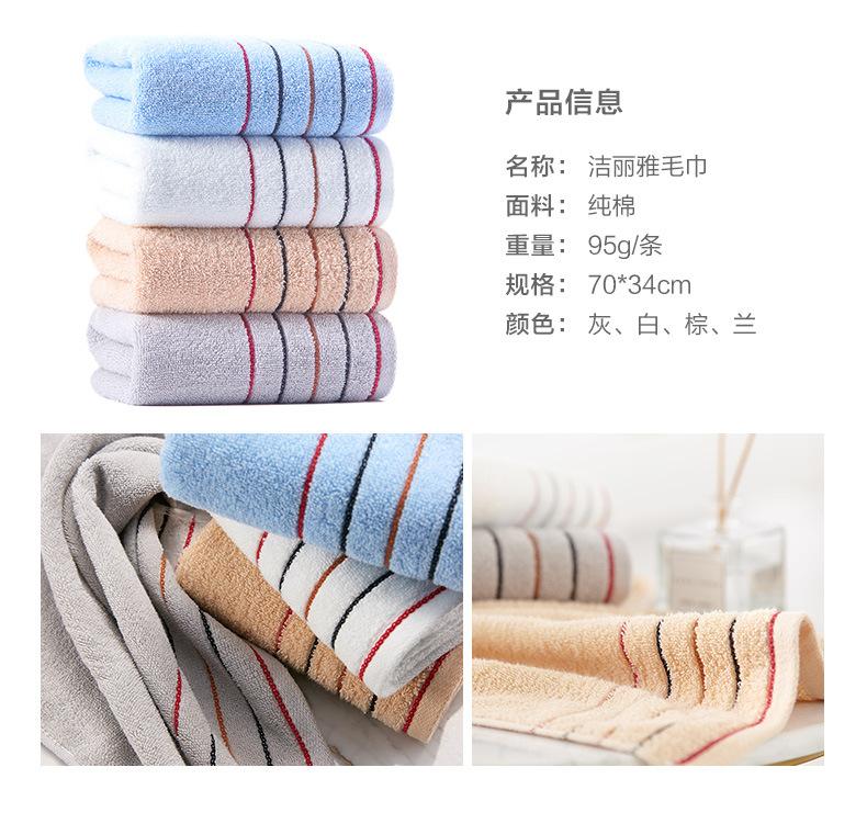 Toalla Jie Liya de algodón gruesa, absorbente, a rayas, bordada, 7050