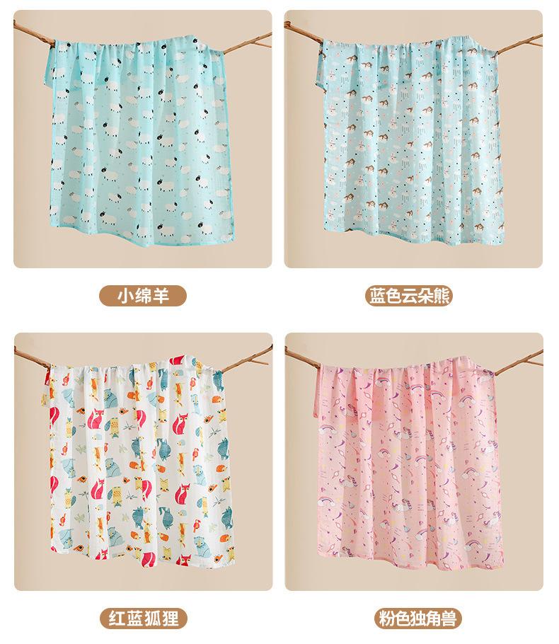 Venta al por mayor de pañales de algodón de colores para bebé, de verano, de crepé fino, para bebé, toalla de baño para niños, pañales para la sala de parto inicial.