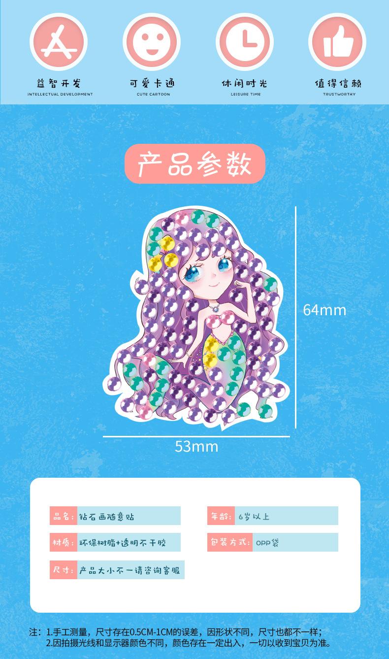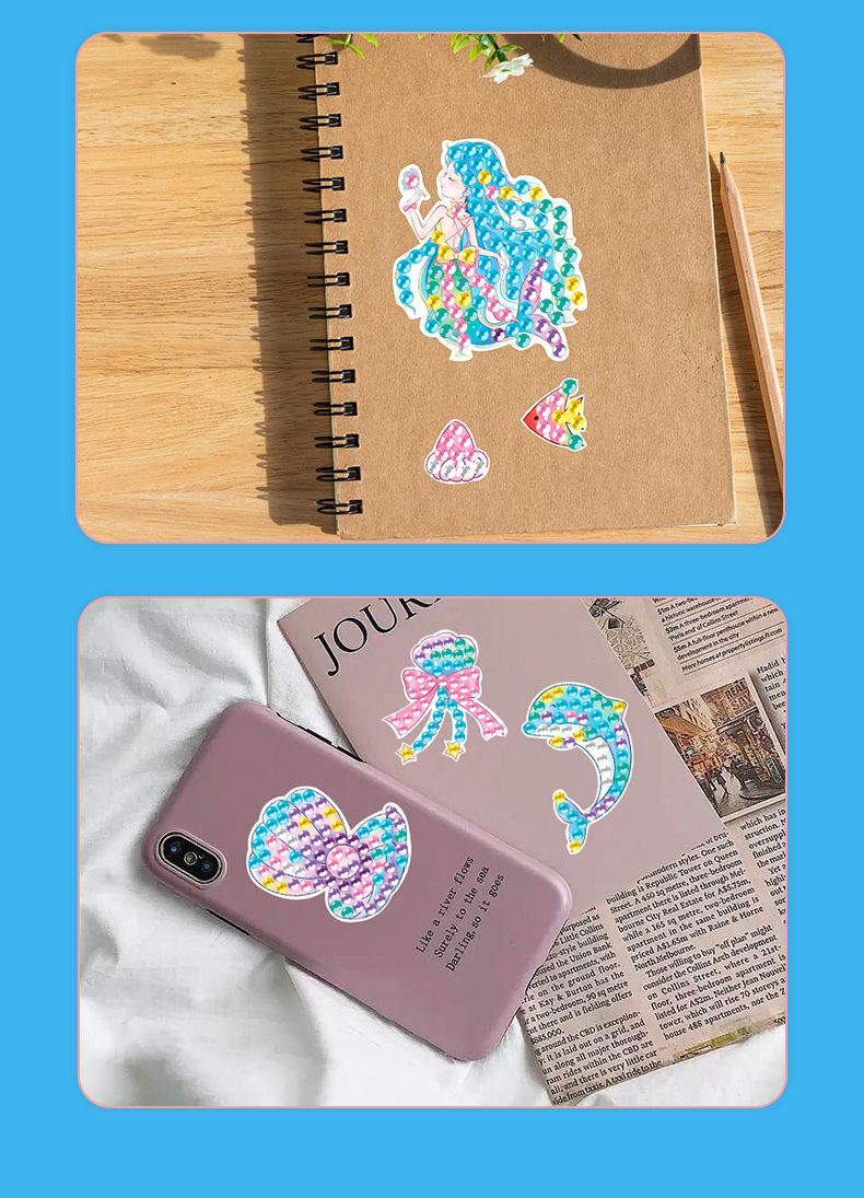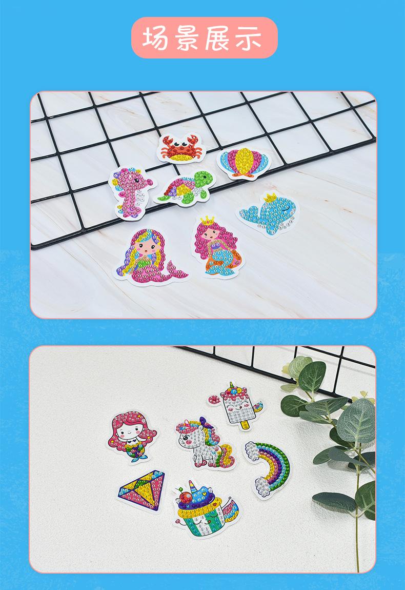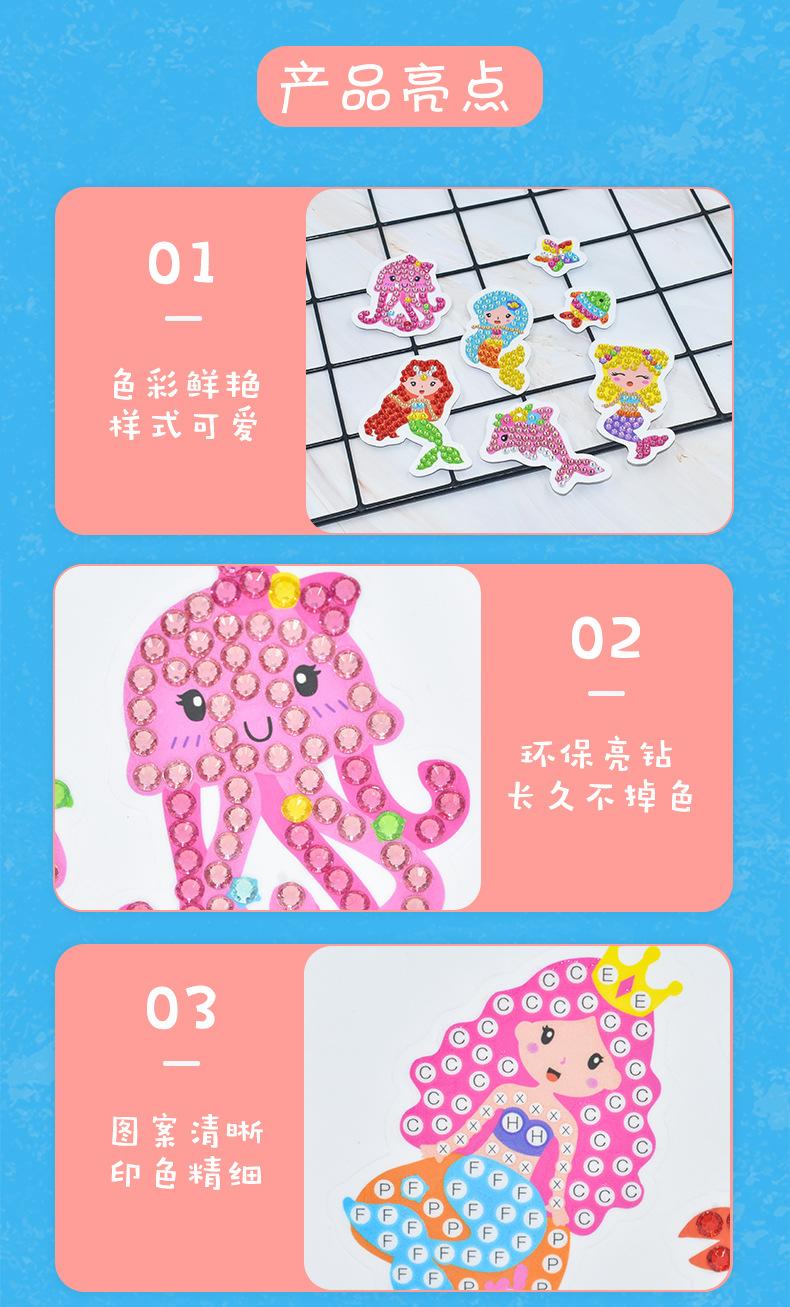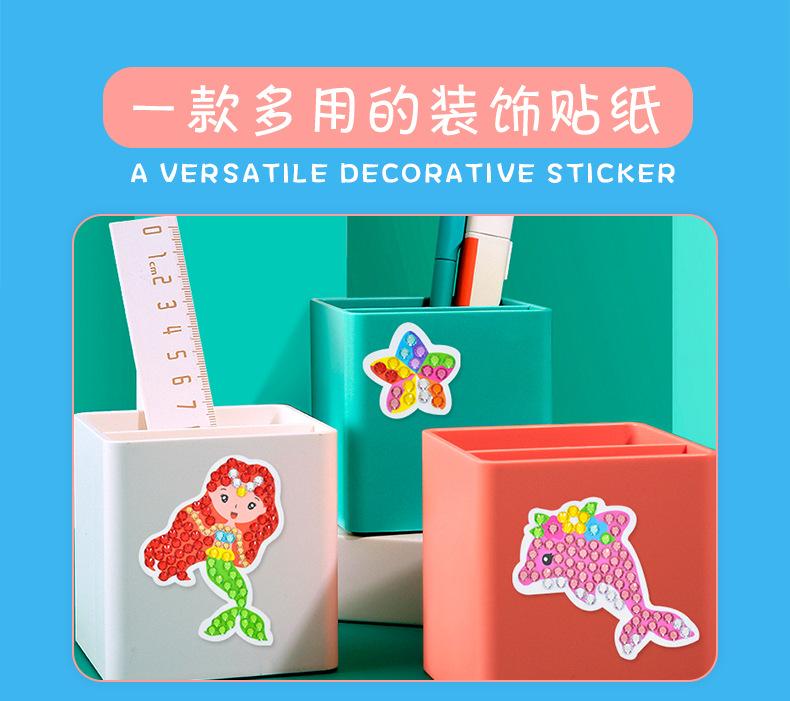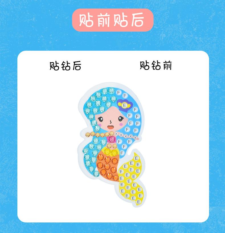 Pegatinas de sirena con pintura de diamantes para niños, material de producción artesanal, pegatinas de diamantes brillantes de dibujos animados para niñas, venta al por mayor