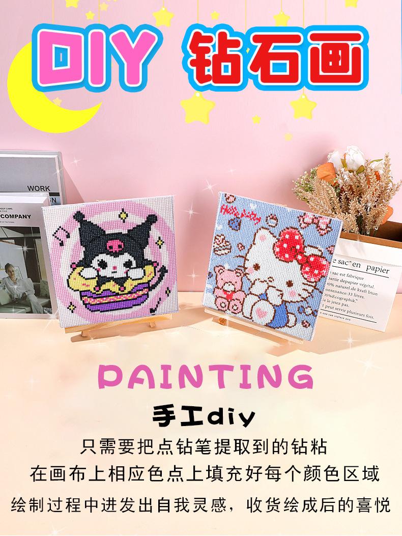 Nueva Pintura Diamante DIY Llena de Diamantes Marco Madera Maciza Kuromi Melody Niños y Estudiantes Pintura de Pegado Hecha a Mano Venta al Por Mayor