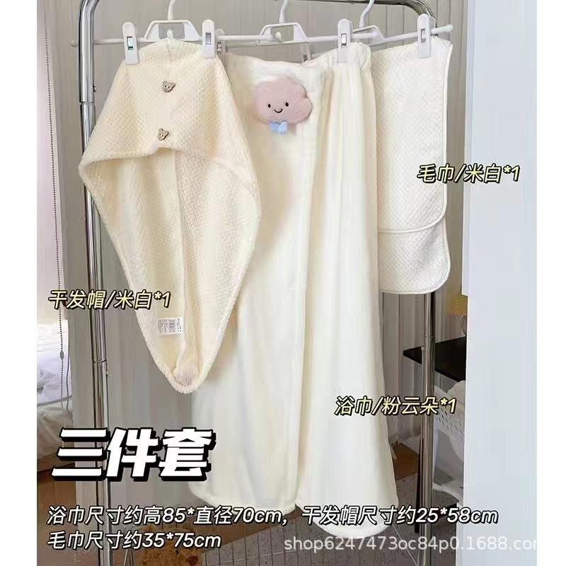Three-piece set {white cheese + towel + shower cap}