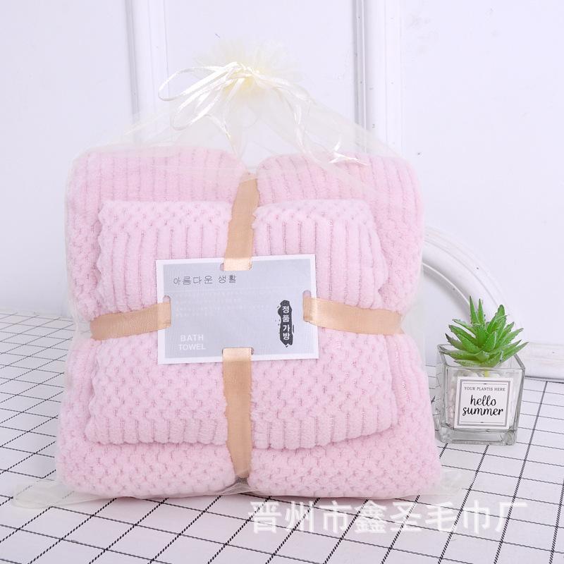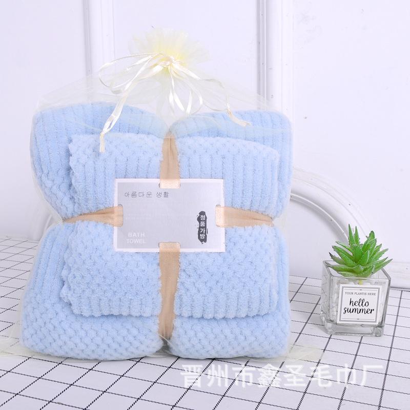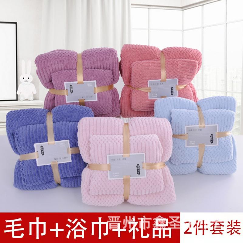 Toalla de baño de coral polar de fábrica, conjunto de dos piezas suave y absorbente con rejilla auspiciosa, ceremonia de apertura