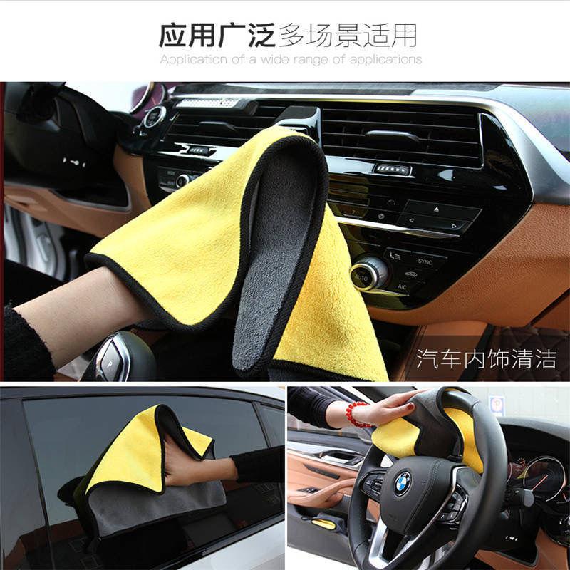 Toalla de lavado de autos multifuncional, de doble cara, de vellón coral de alta densidad, gruesa, absorbente, de fibra de vidrio