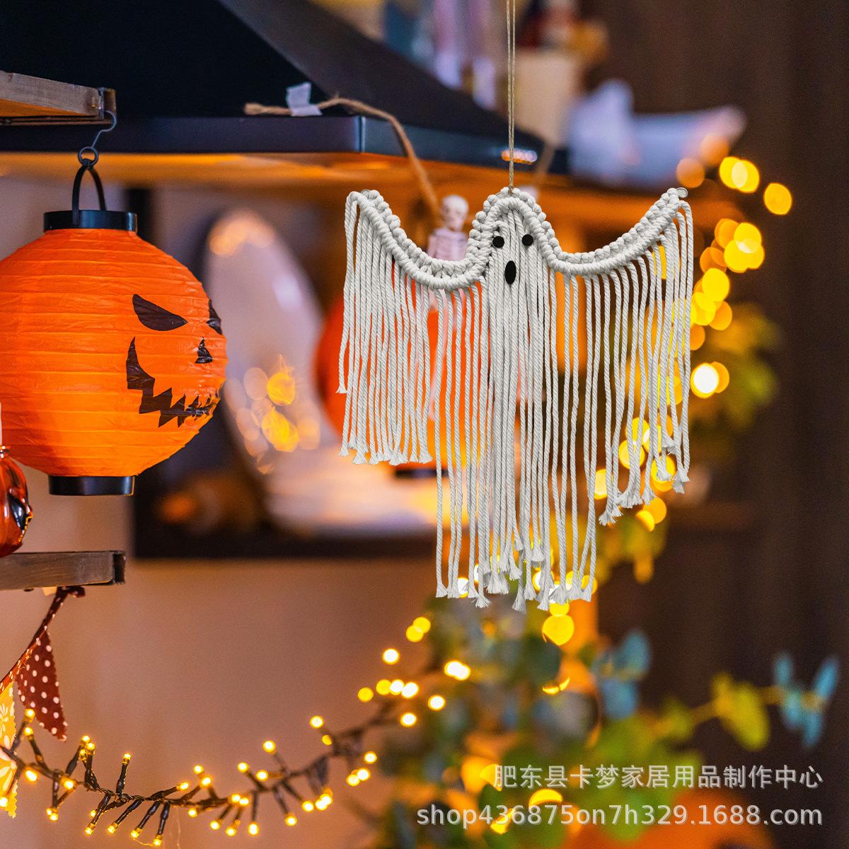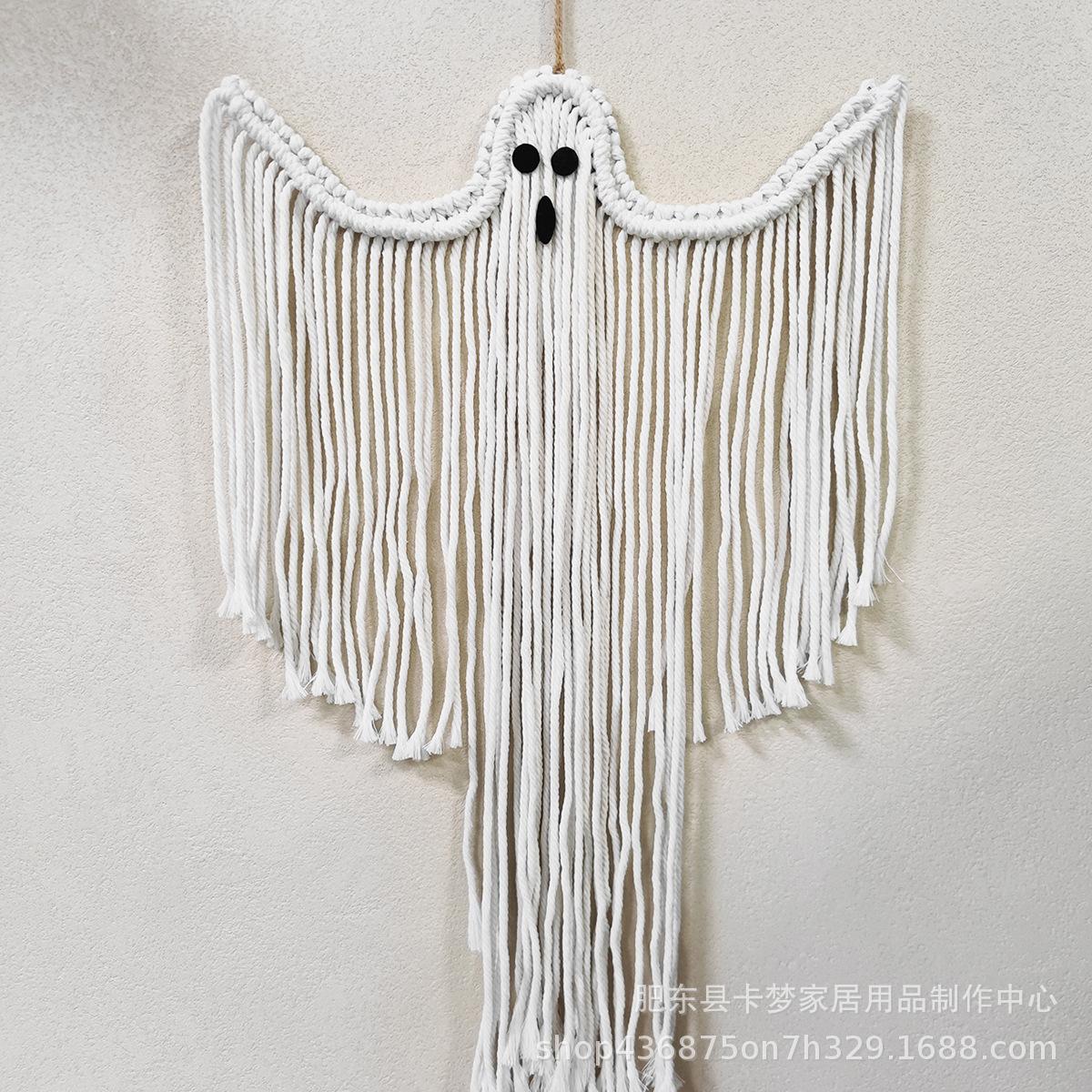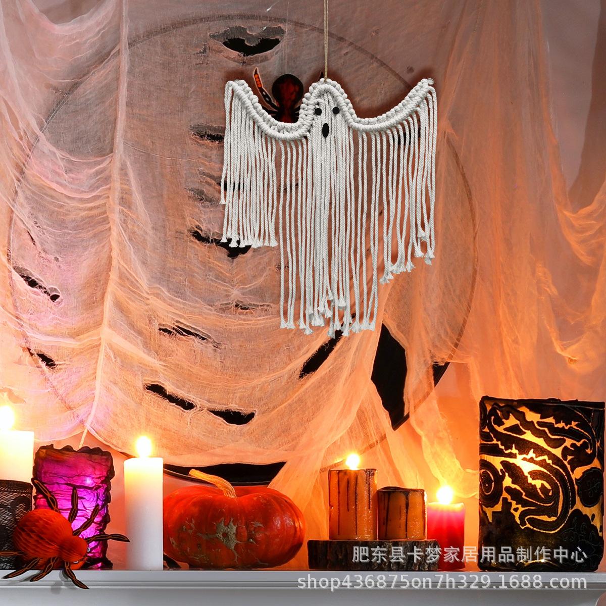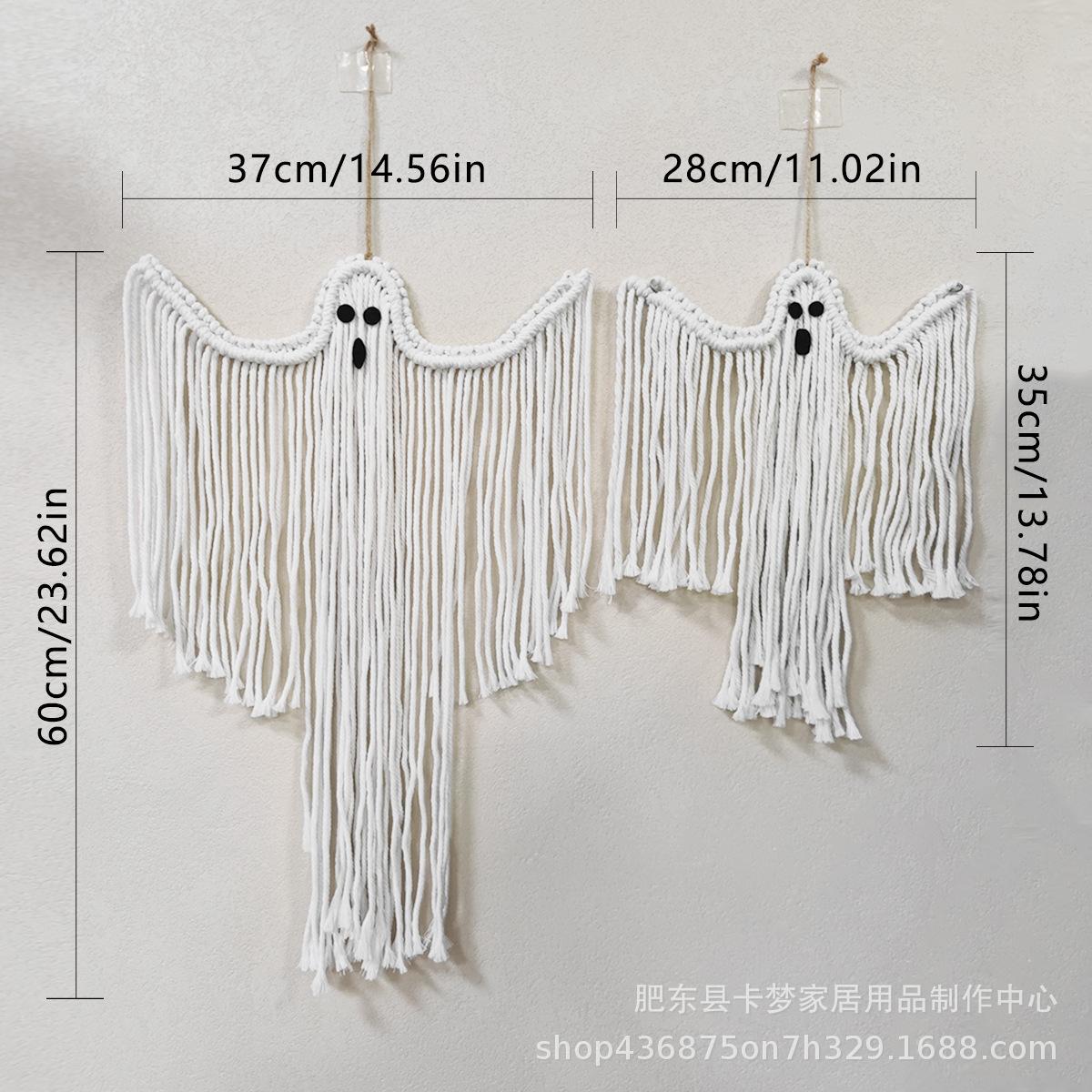 Decoración de Halloween colgante hecha a mano tejida blanca fantasma para colgar en la pared decoración de escena festiva