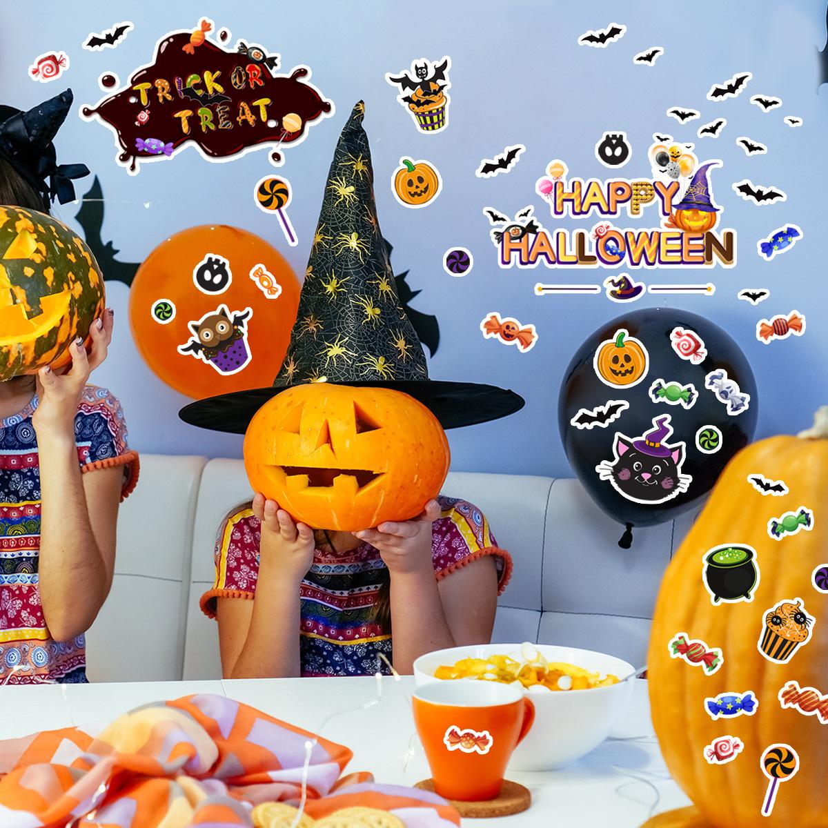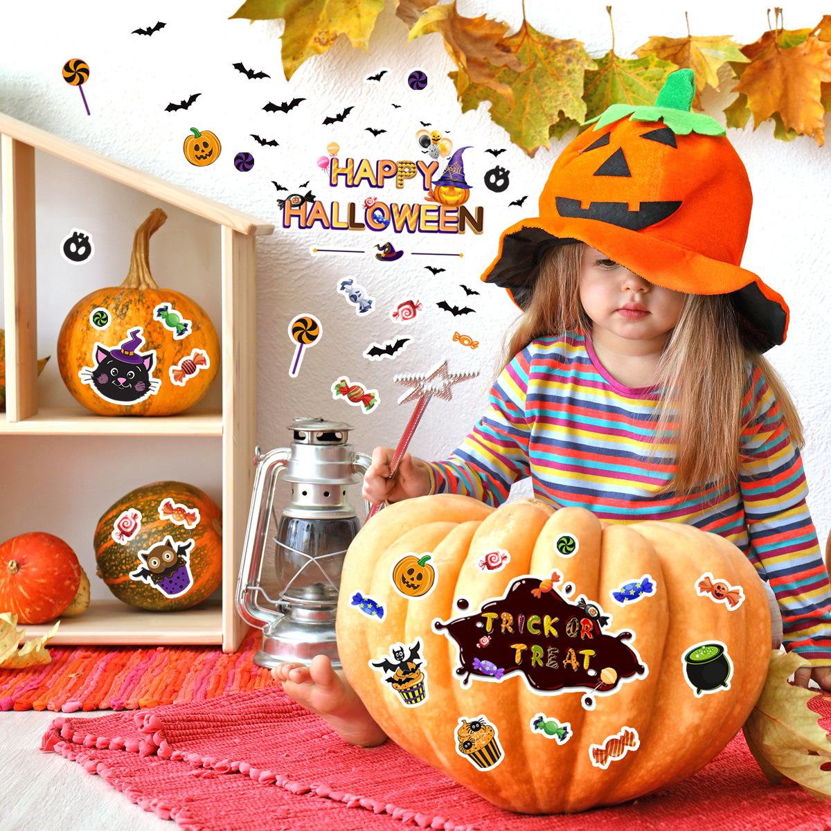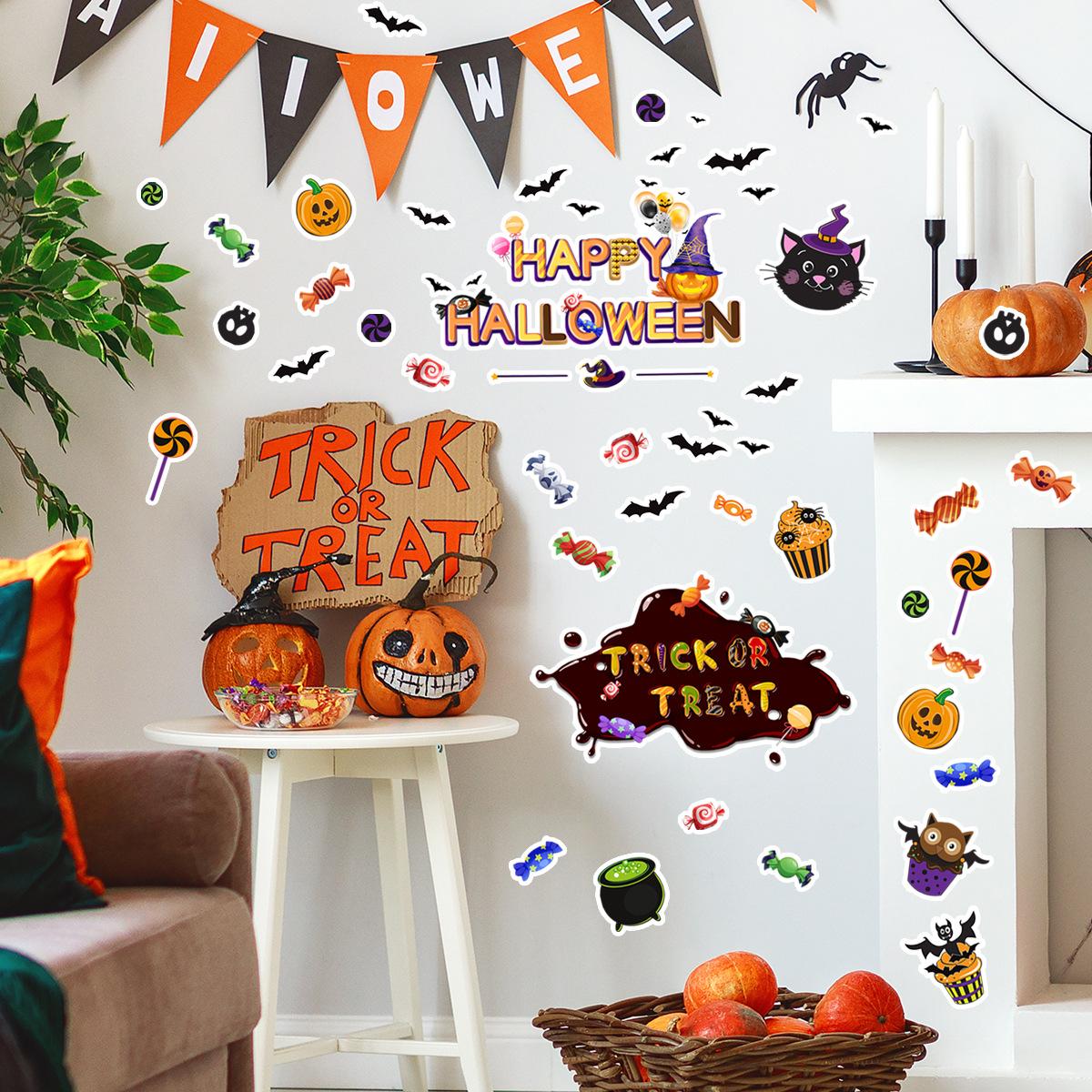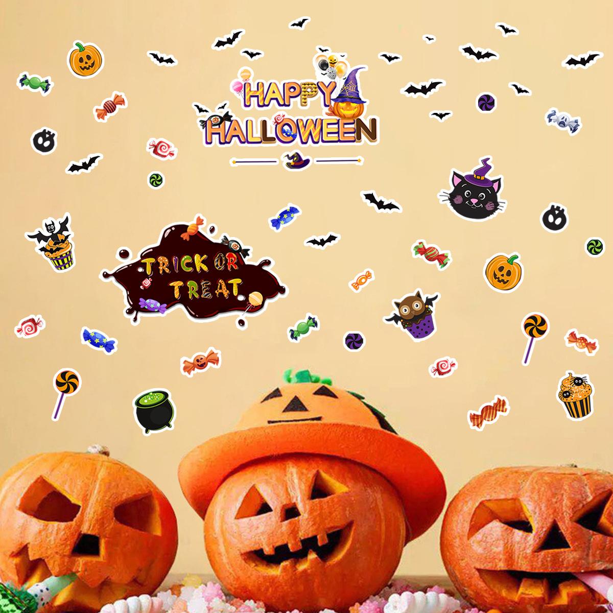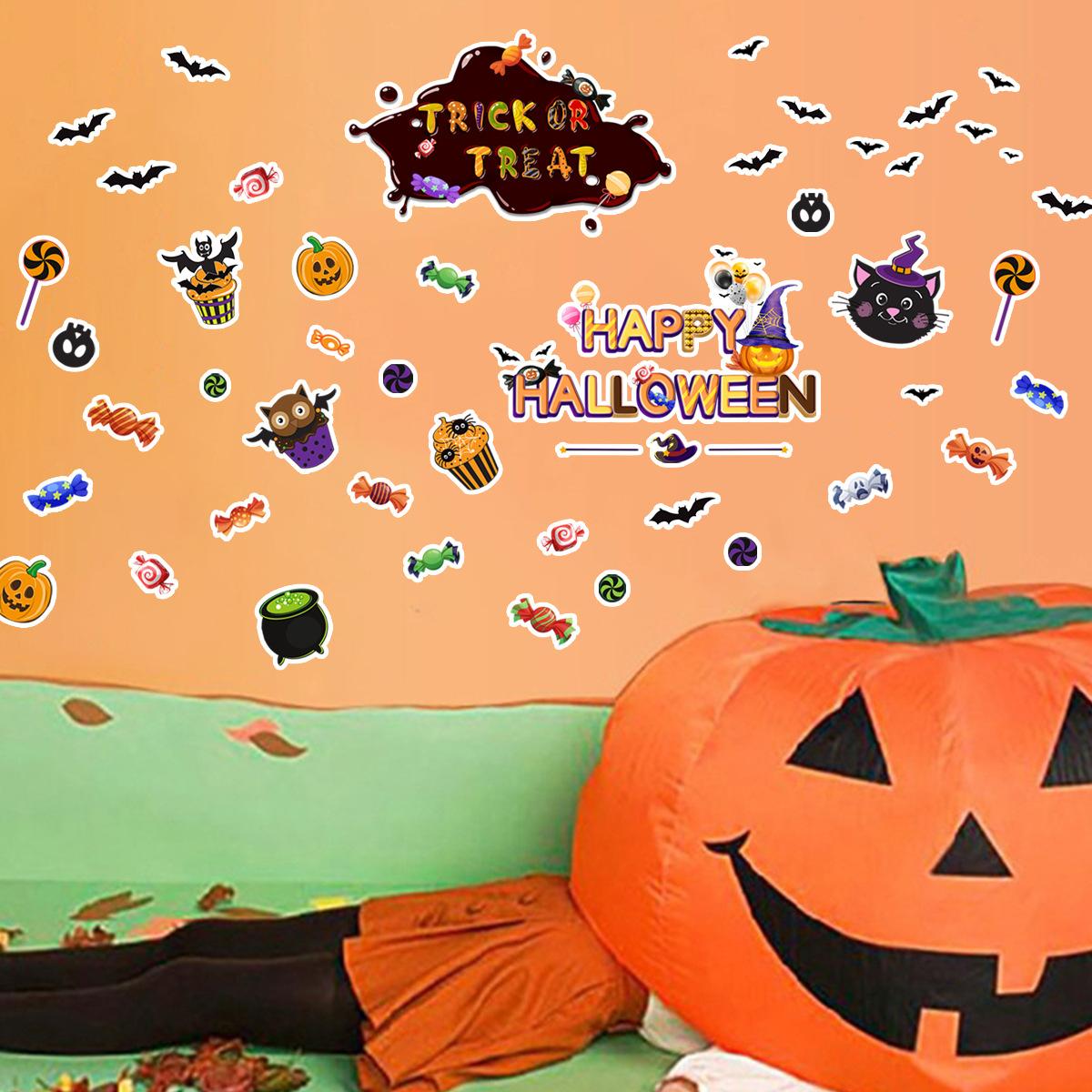 ATW042-YW Halloween Calabaza Murciélago Fiesta Creativa Pegatinas de Pared Fondo Dormitorio Decorativo Pared