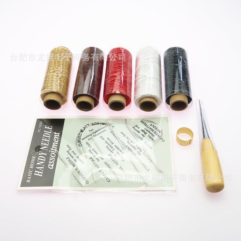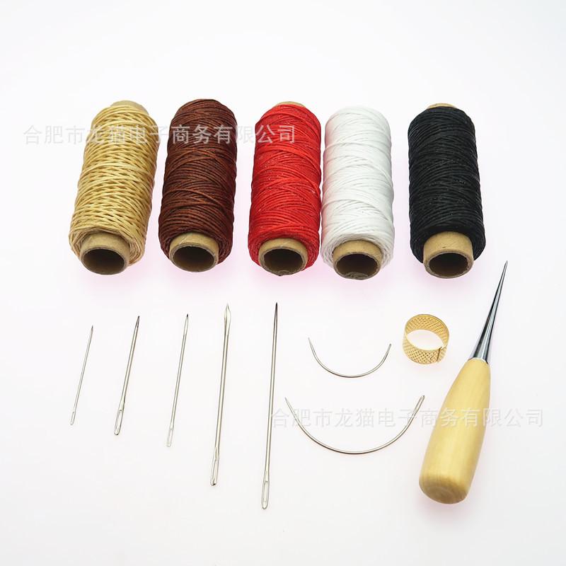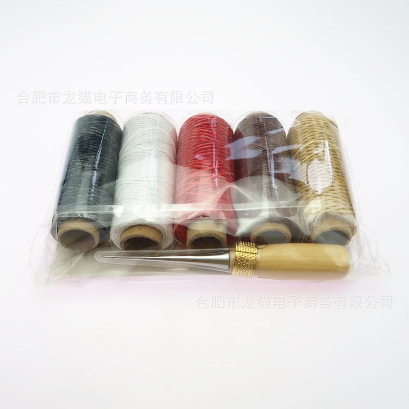 Hilo encerado 150D 50m 5 piezas: color natural + café + rojo brillante + blanqueado + negro