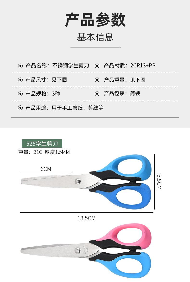 Tijeras de acero inoxidable 525 para niños, tijeras de oficina, papelería, tijeras para estudiantes, tijeras pequeñas para el hogar, venta al por mayor de fábrica